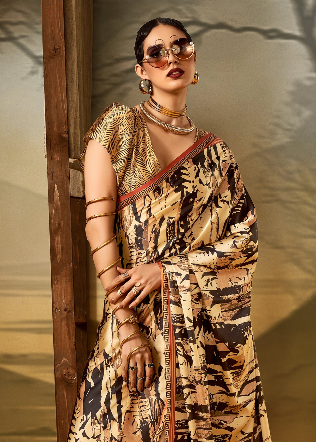 Beige And Red Printed Patola Silk Saree