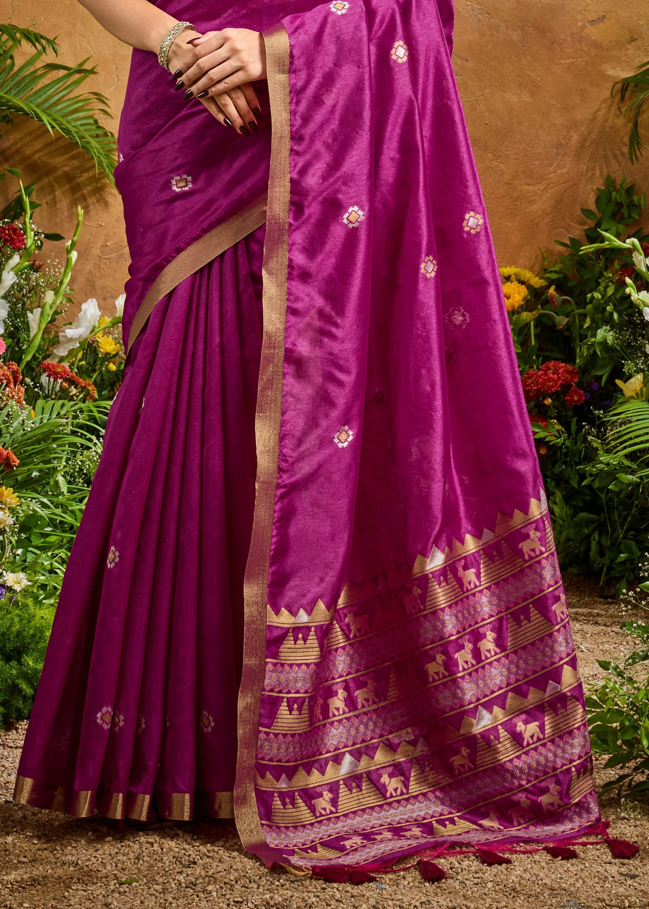 This luxurious Patola Saree is every women's dream. With carefully selected designs in vibrant colors, you can't go wrong with this choice.