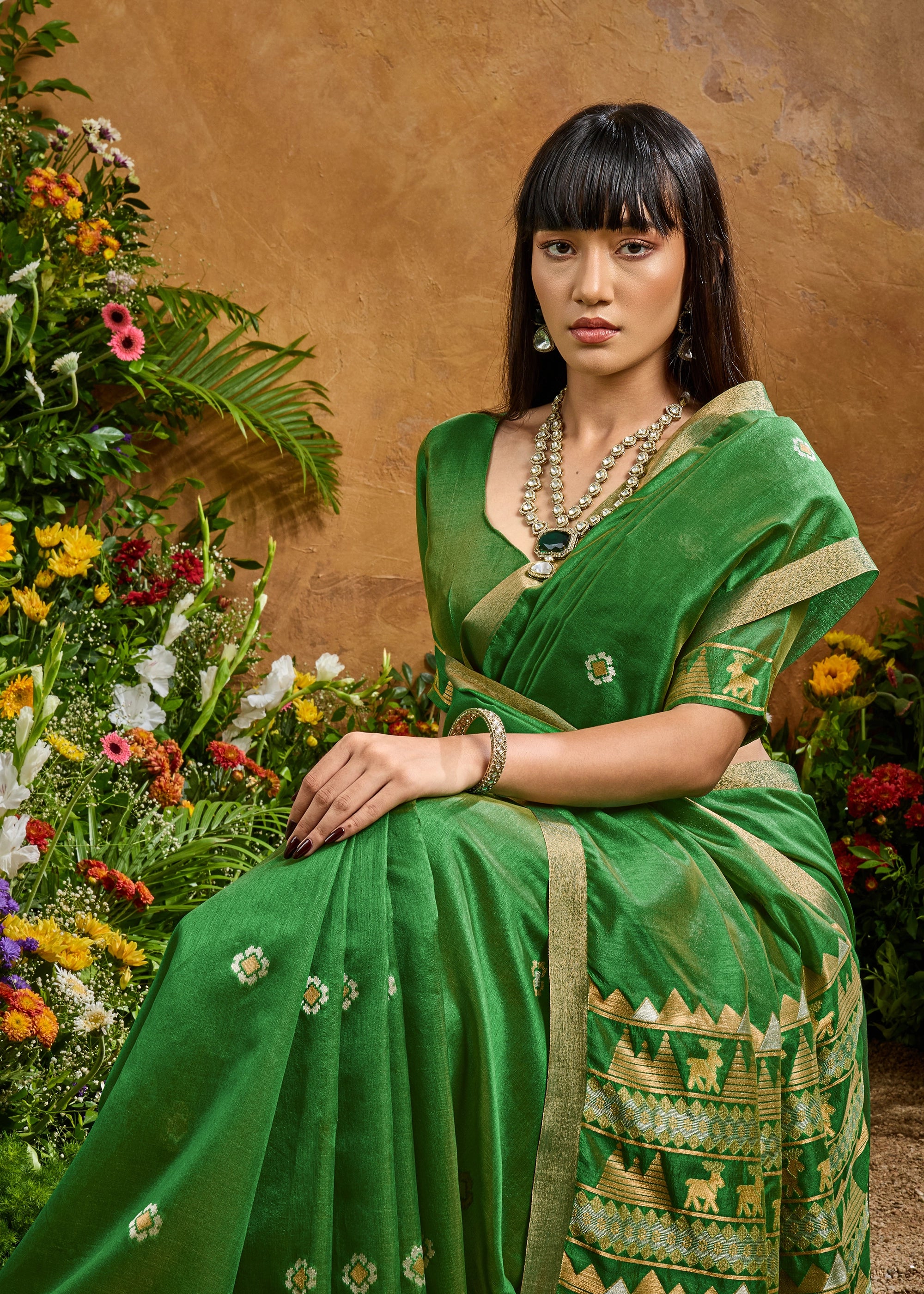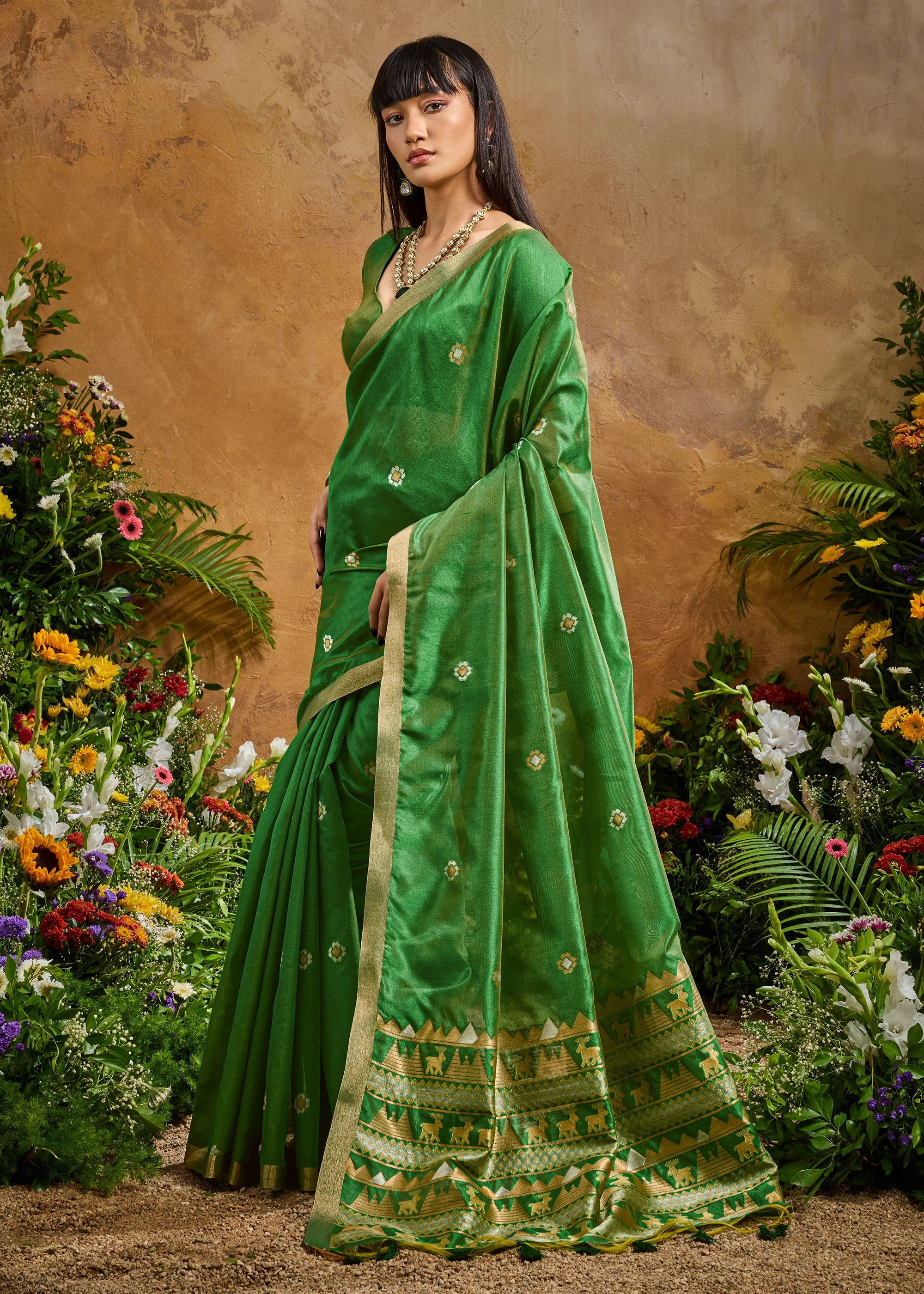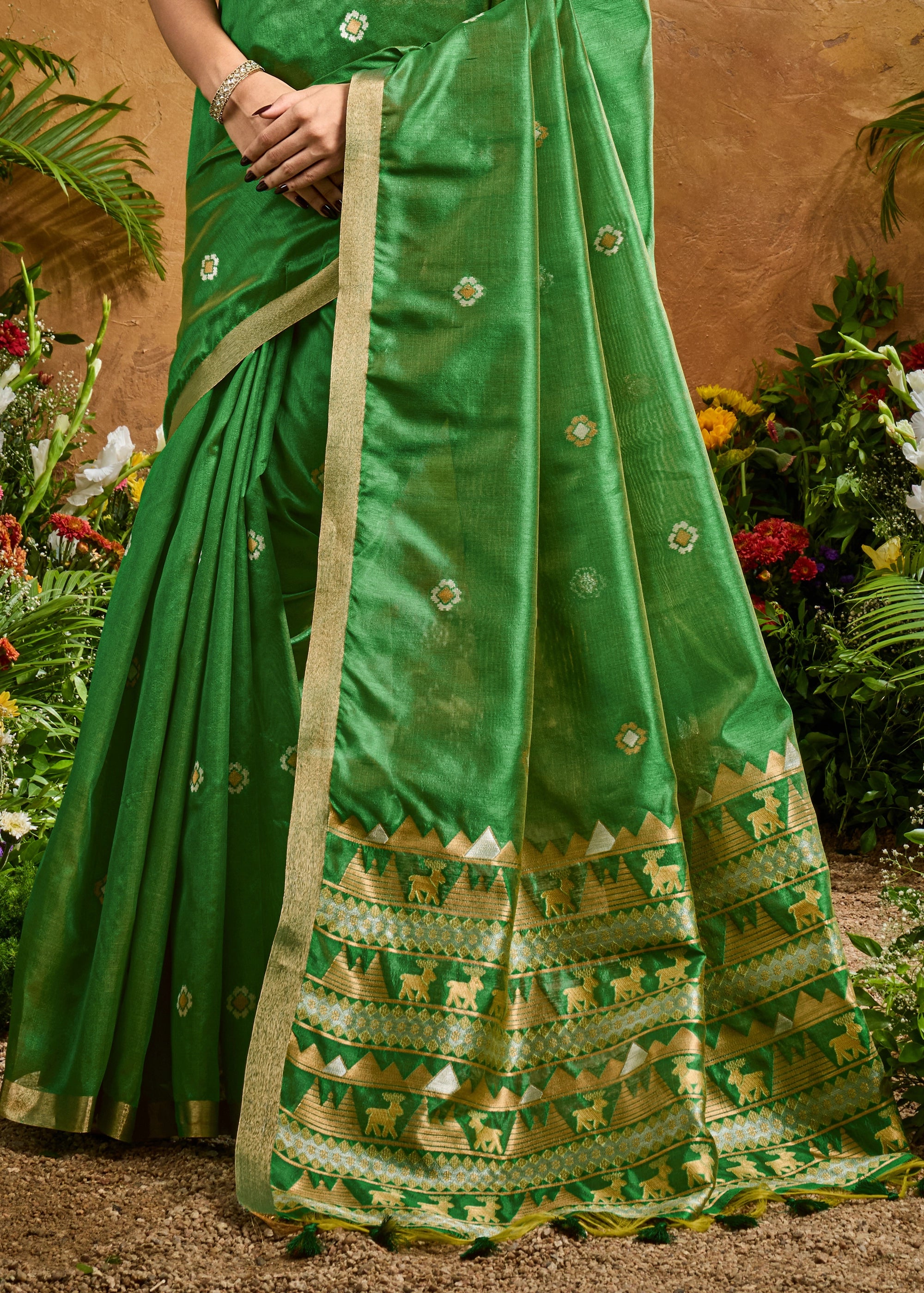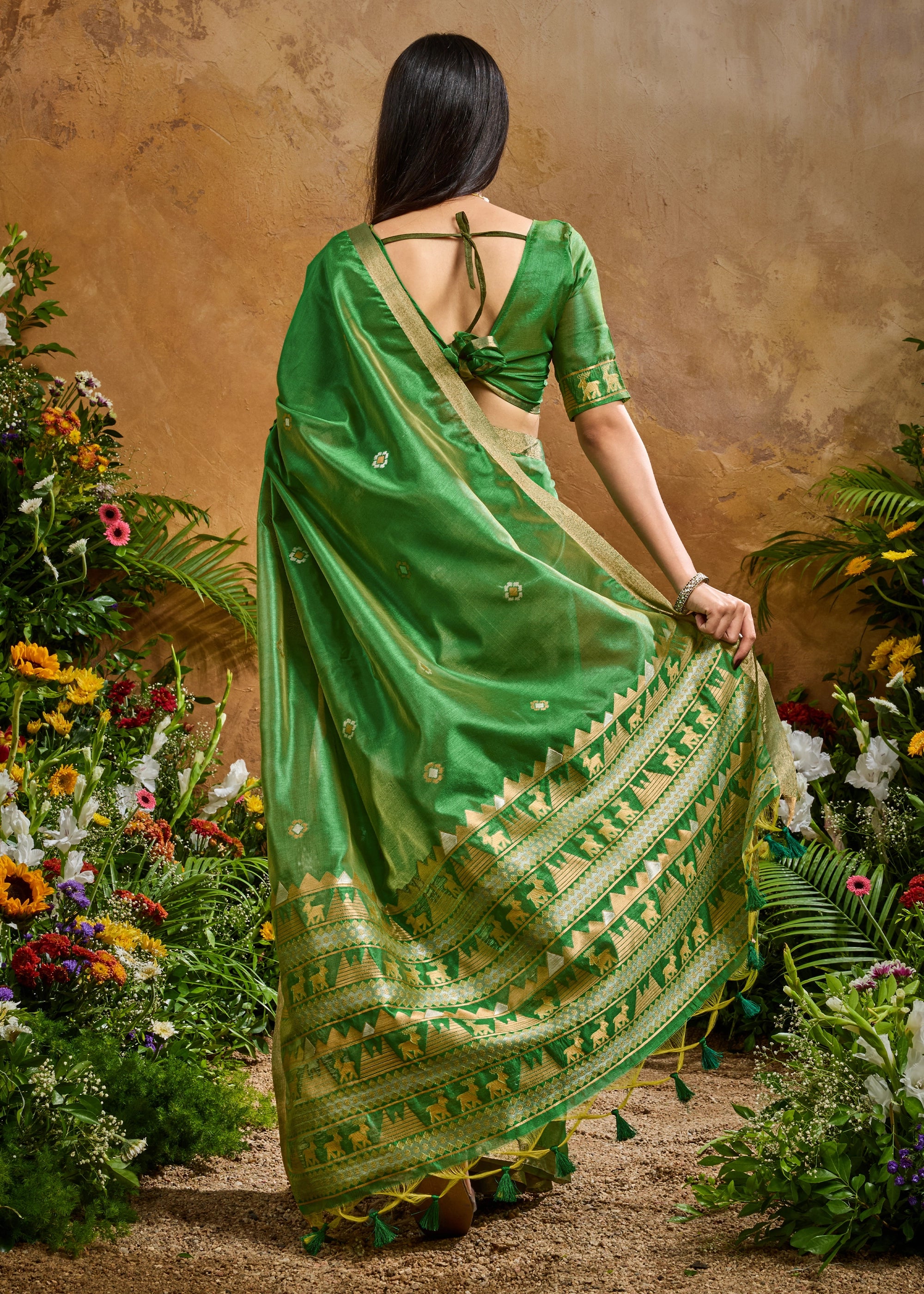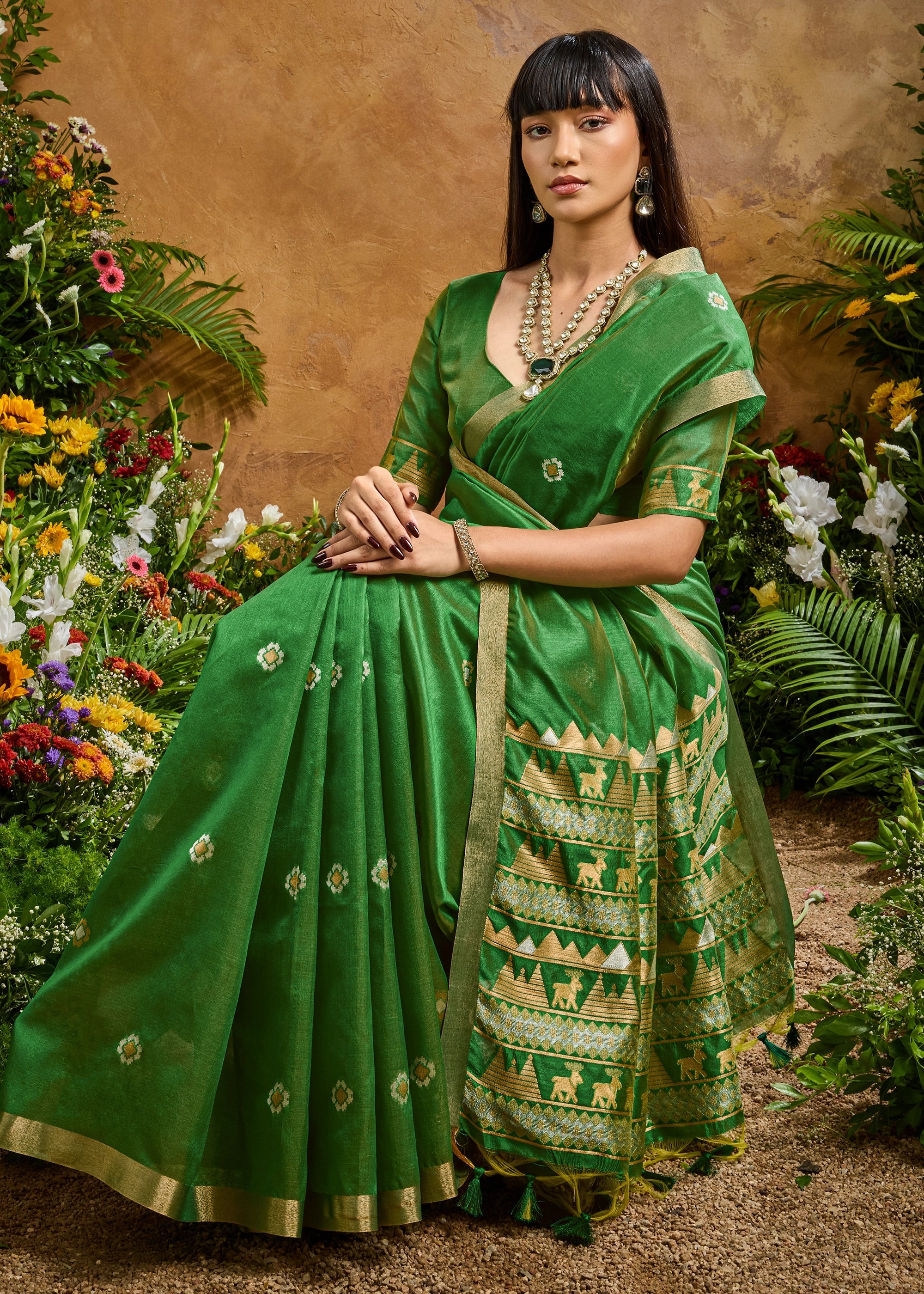 Sage Green Woven Banarasi Silk Saree