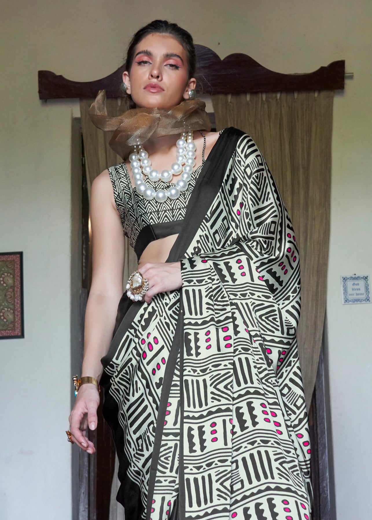 Drape yourself in the luxurious embrace of our Digital Printed Satin Silk Saree, a harmonious blend of traditional artistry and contemporary design. Crafted from the finest satin silk, this saree offers an unparalleled soft touch and a beautiful, flowing drape that accentuates every silhouette.