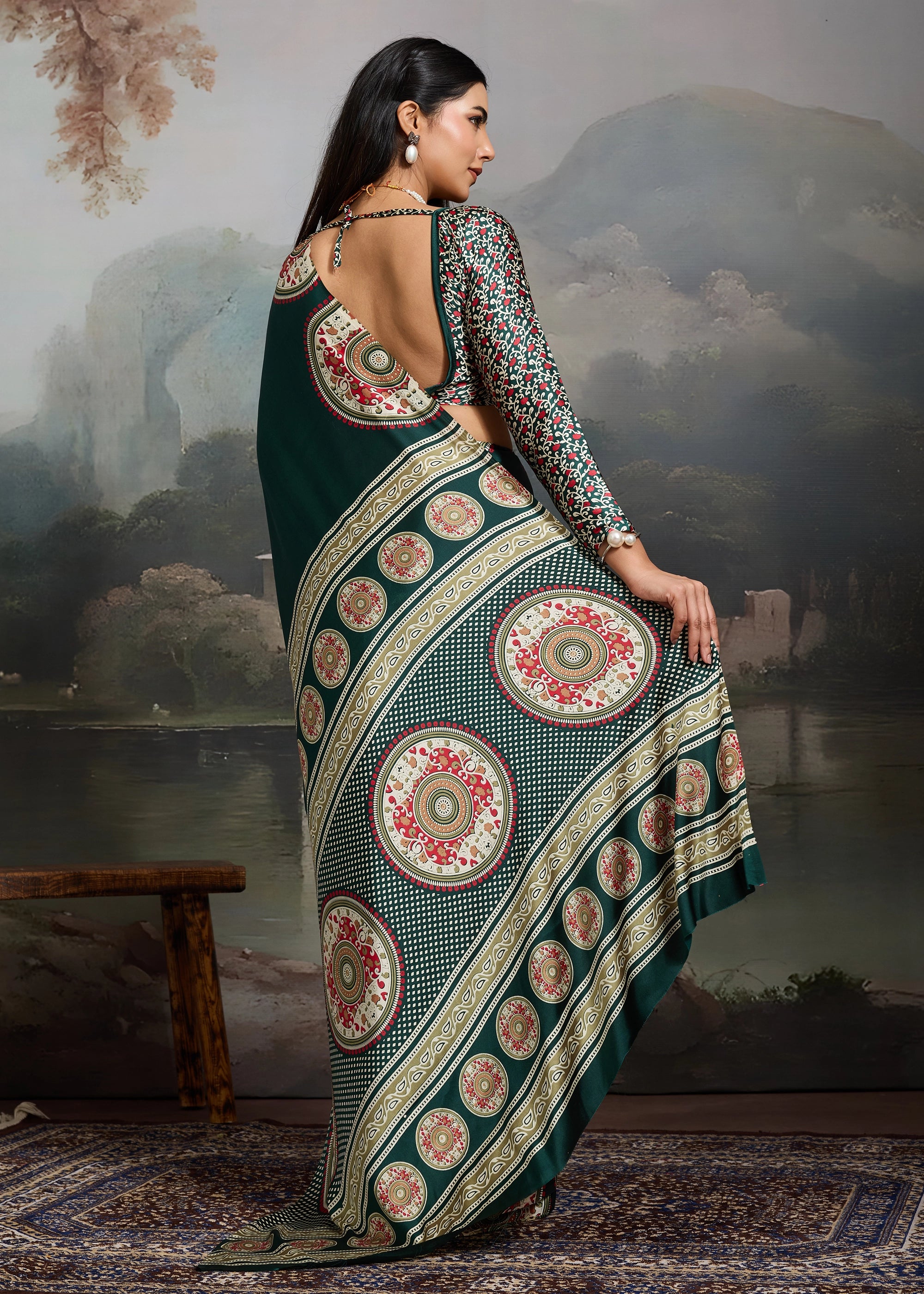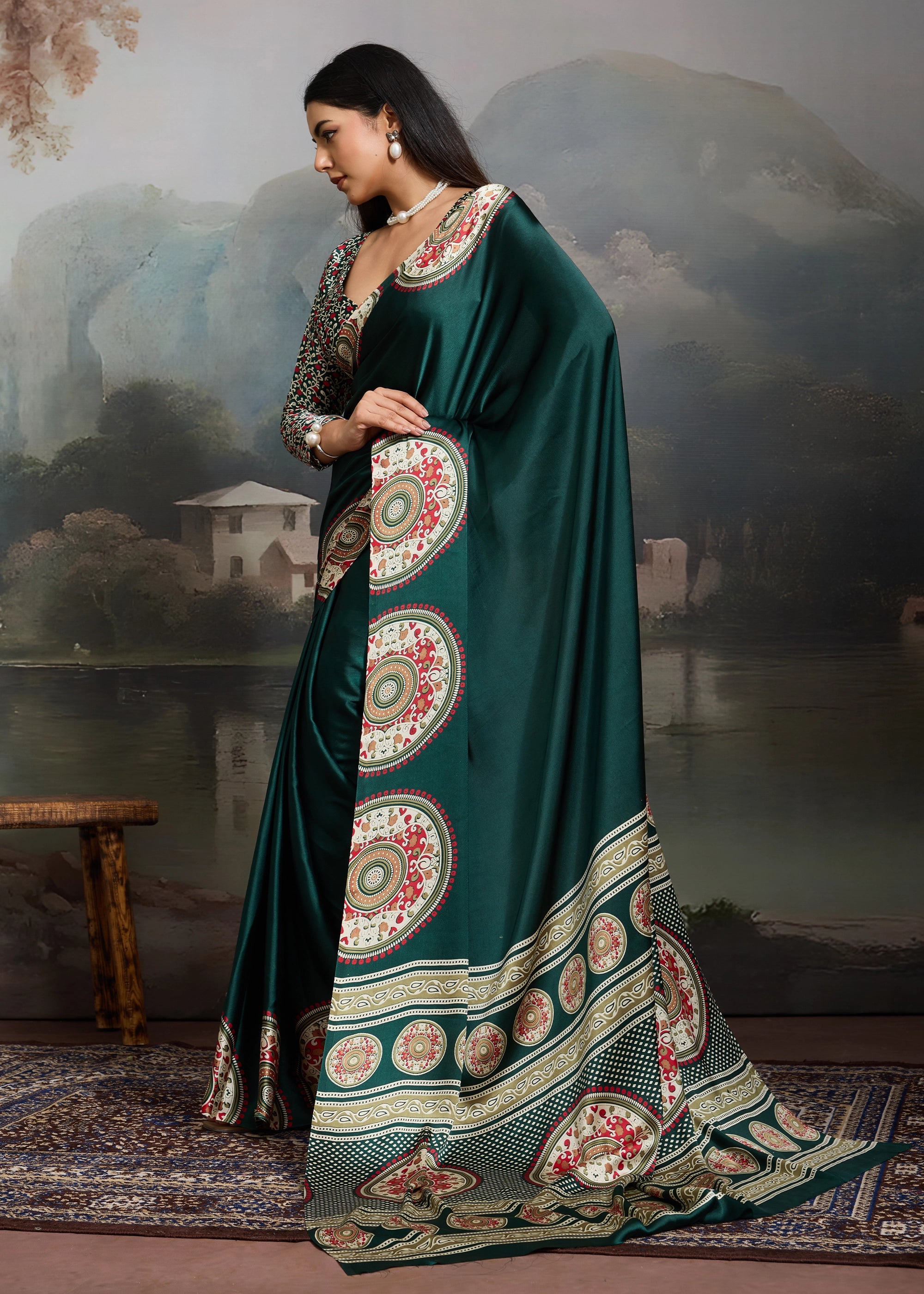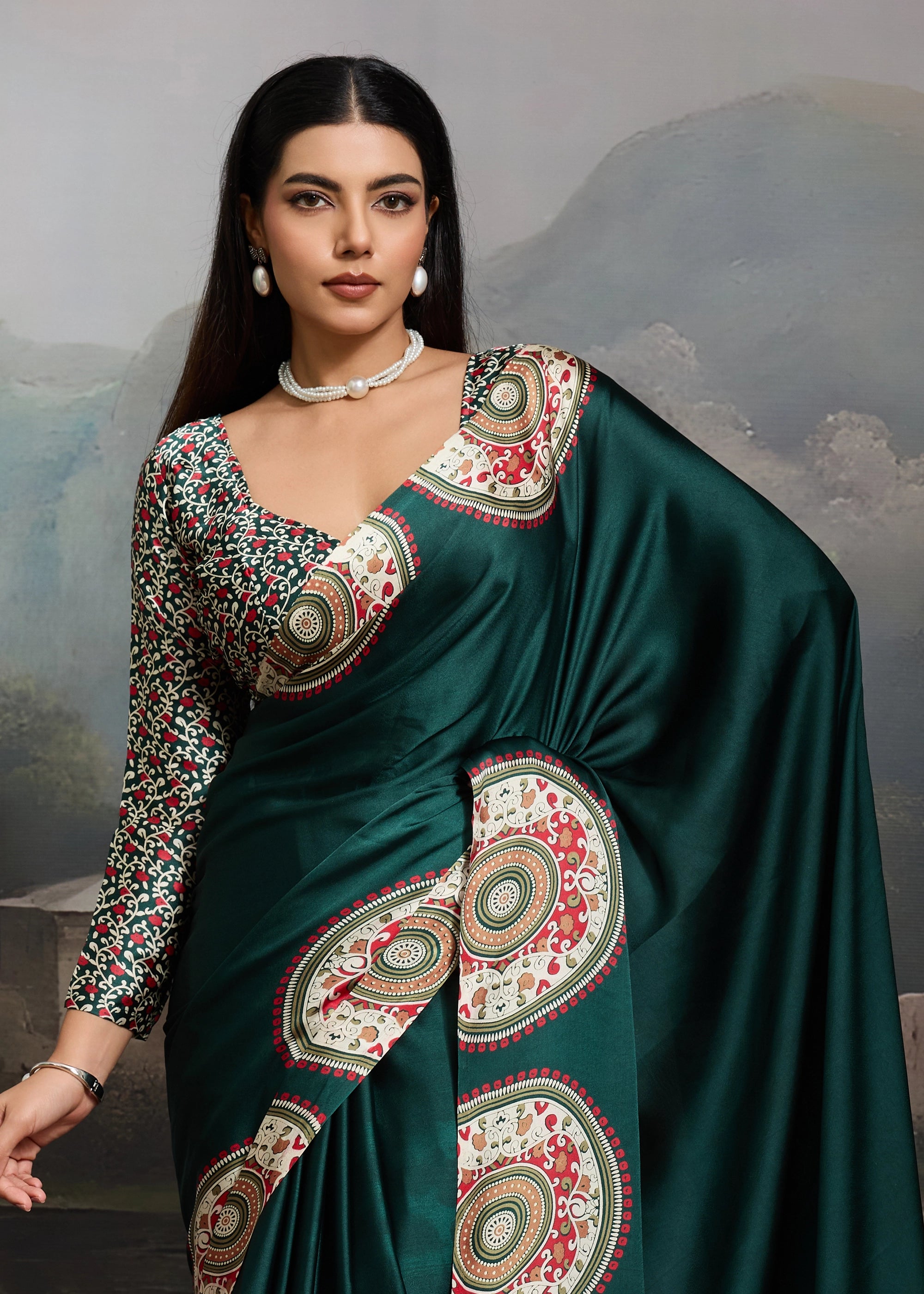 Drape yourself in the luxurious embrace of our Digital Printed Satin Silk Saree, a harmonious blend of traditional artistry and contemporary design. Crafted from the finest satin silk, this saree offers an unparalleled soft touch and a beautiful, flowing drape that accentuates every silhouette.
