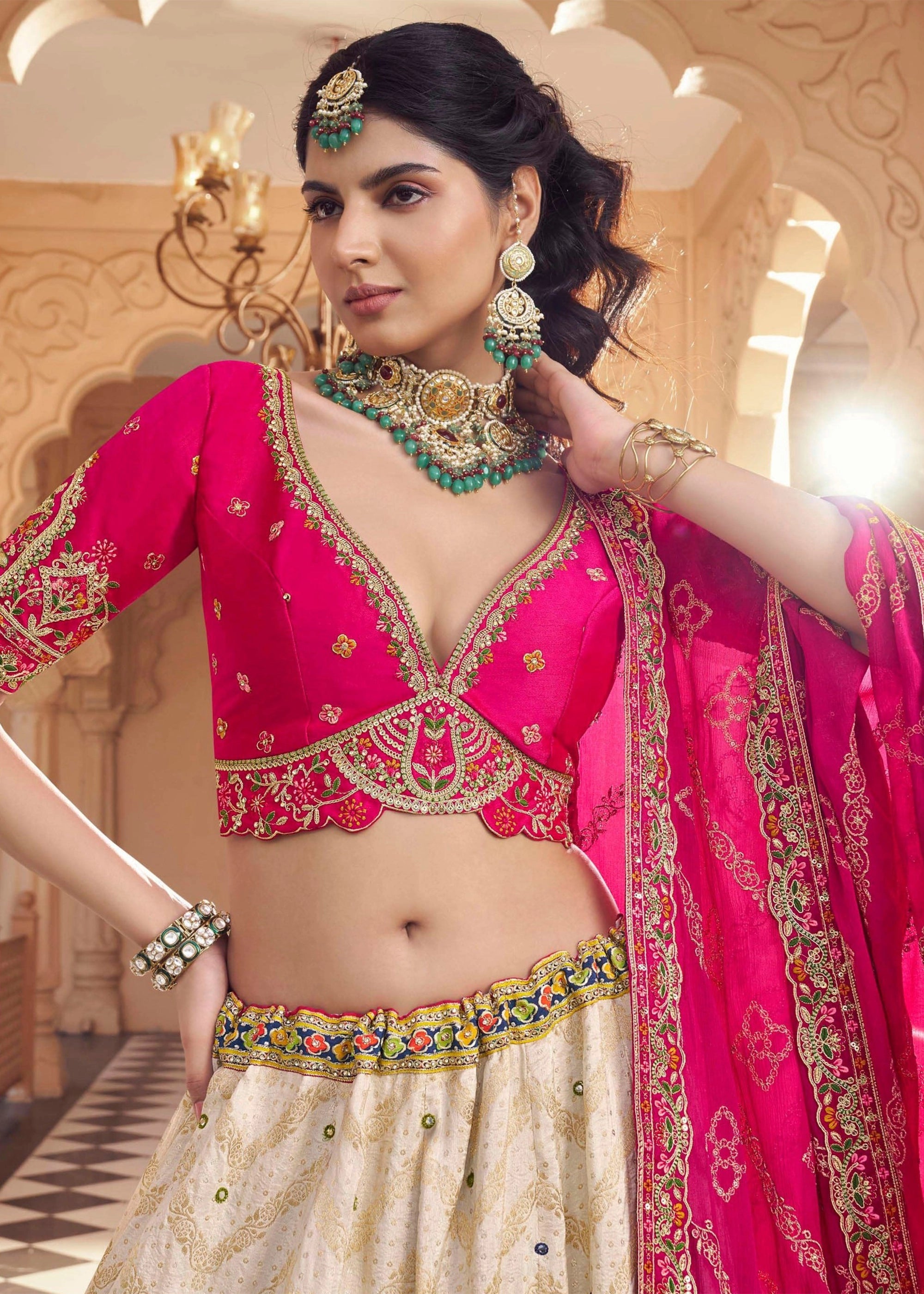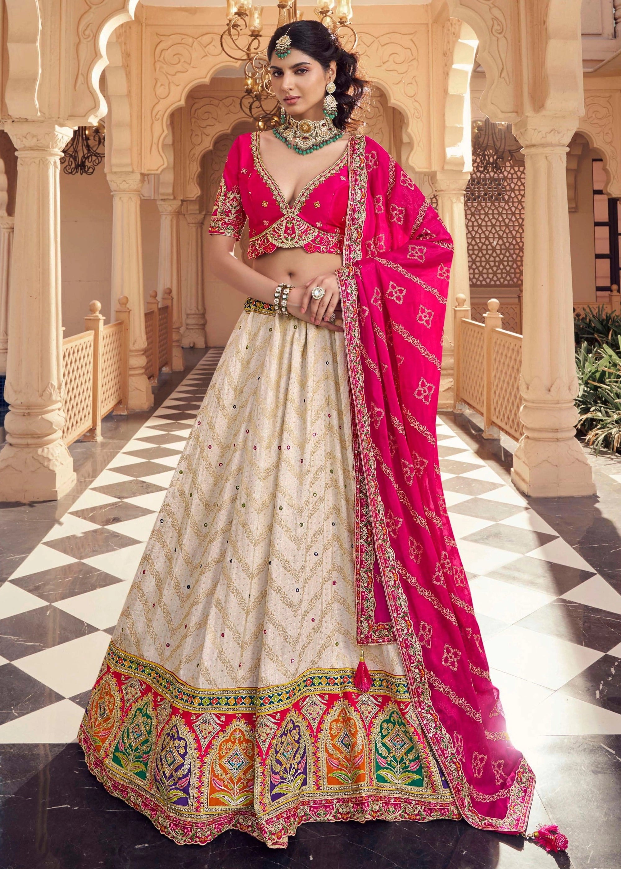 White And Pink Embroidered Designer Lehenga Set