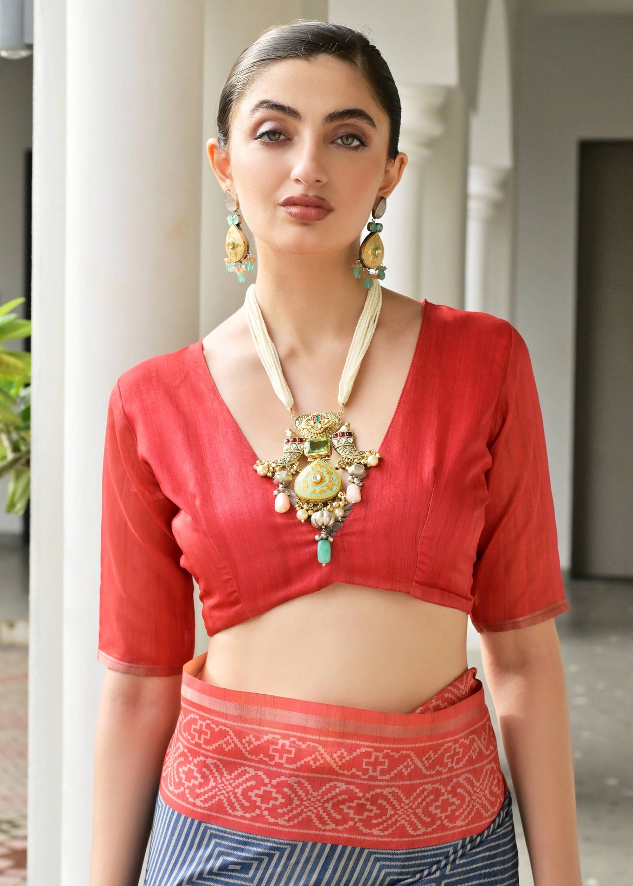 Be an angel and create and establish a smashing influence on everybody by carrying this traditional Banarasi Brocade saree. This saree is crafted by skilled weaver of Banaras with elegance and grace, this saree is definitely the epitome of beauty and a must have in your collection. Style it with your best pair of heels, gold or Moti necklace and a potli bag for the perfect look.