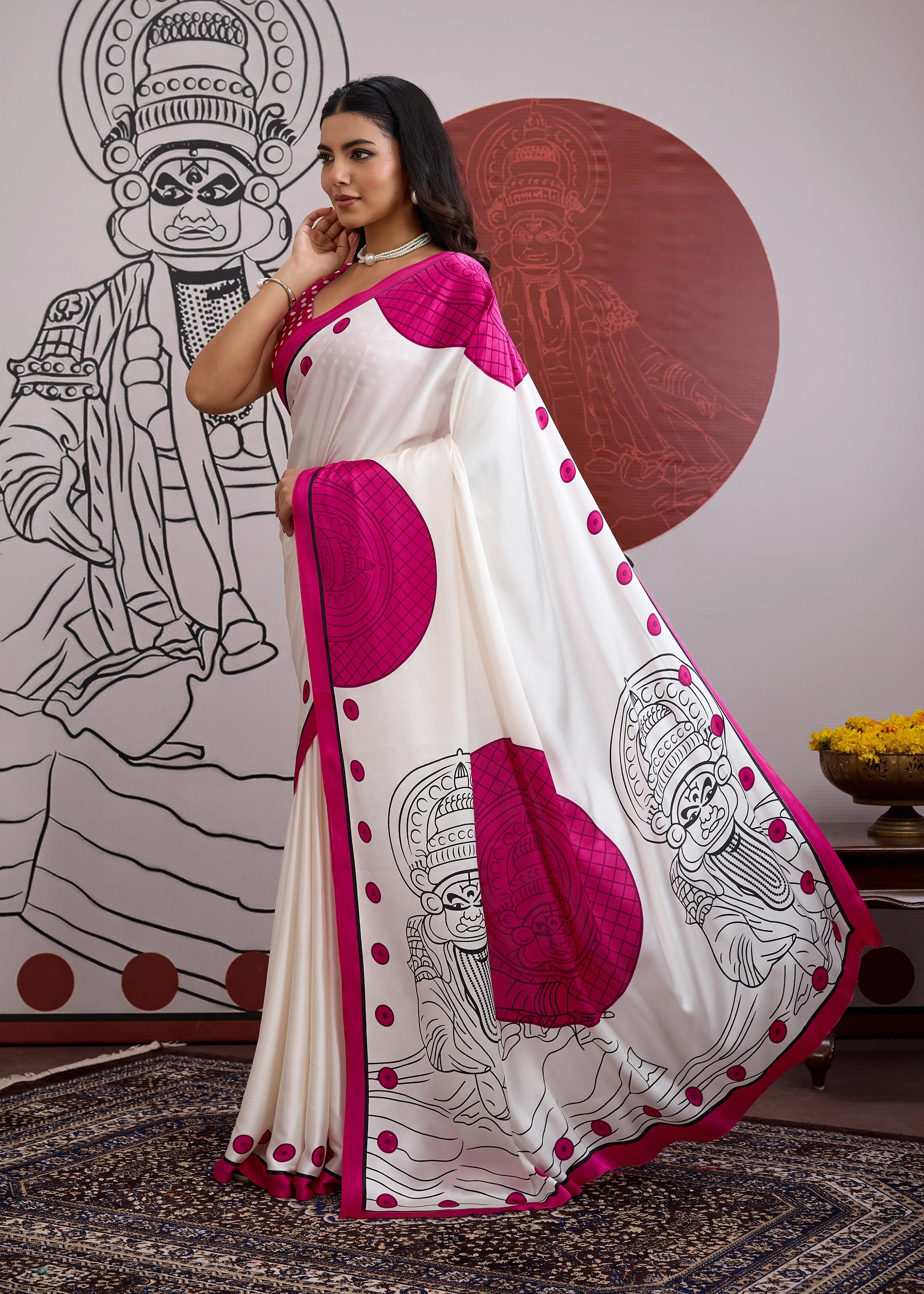 Drape yourself in the luxurious embrace of our Digital Printed Satin Silk Saree, a harmonious blend of traditional artistry and contemporary design. Crafted from the finest satin silk, this saree offers an unparalleled soft touch and a beautiful, flowing drape that accentuates every silhouette.