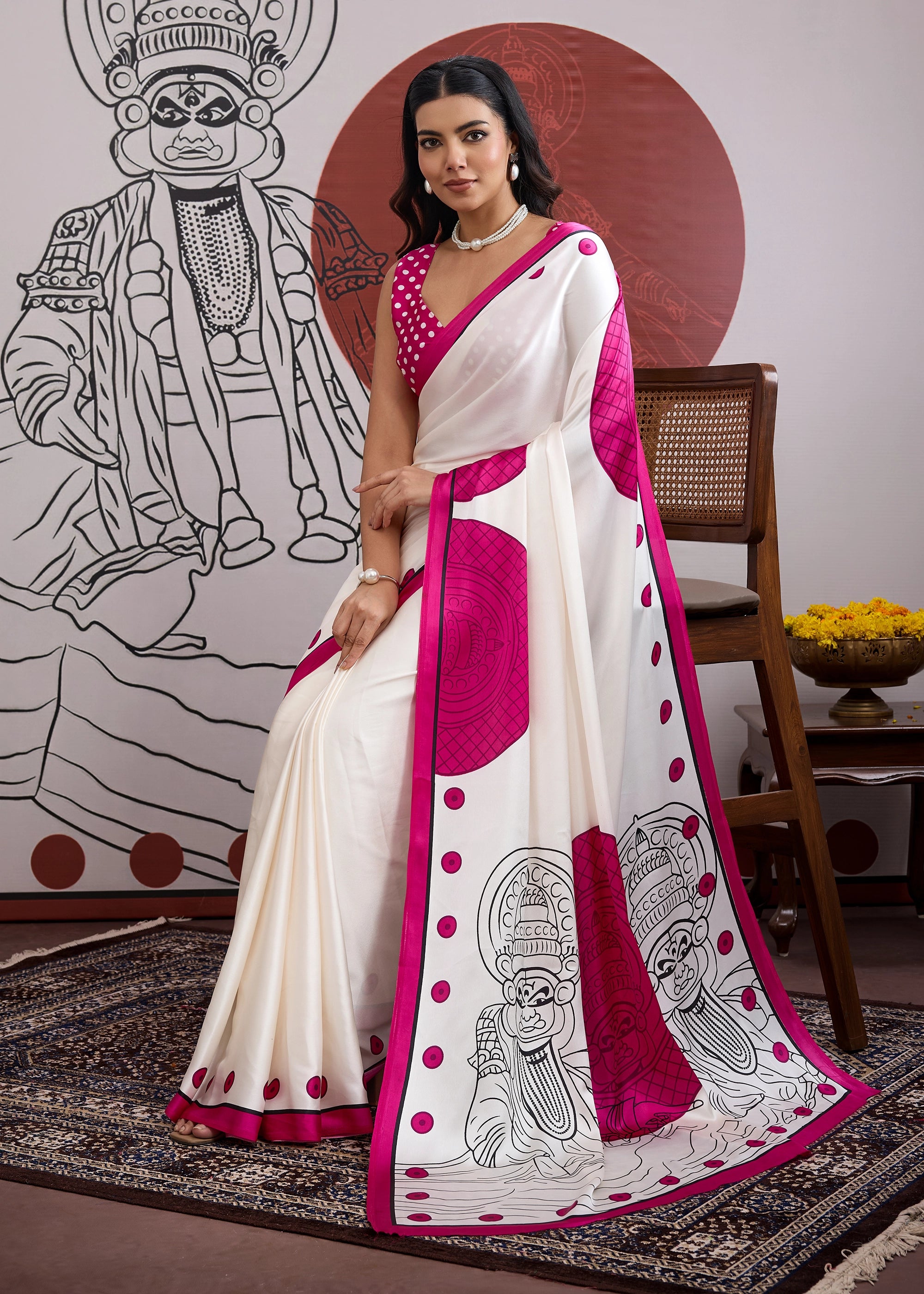 Drape yourself in the luxurious embrace of our Digital Printed Satin Silk Saree, a harmonious blend of traditional artistry and...