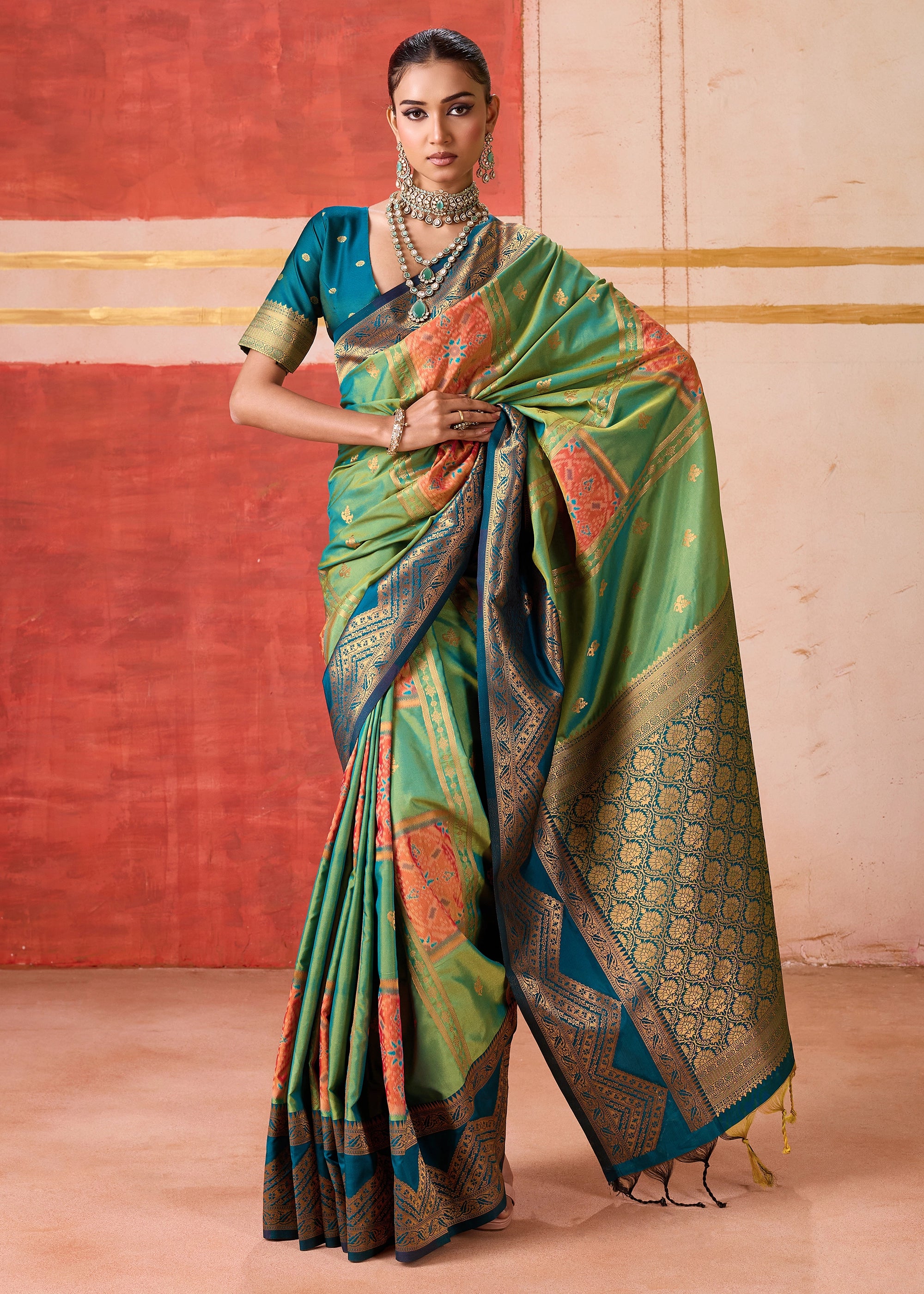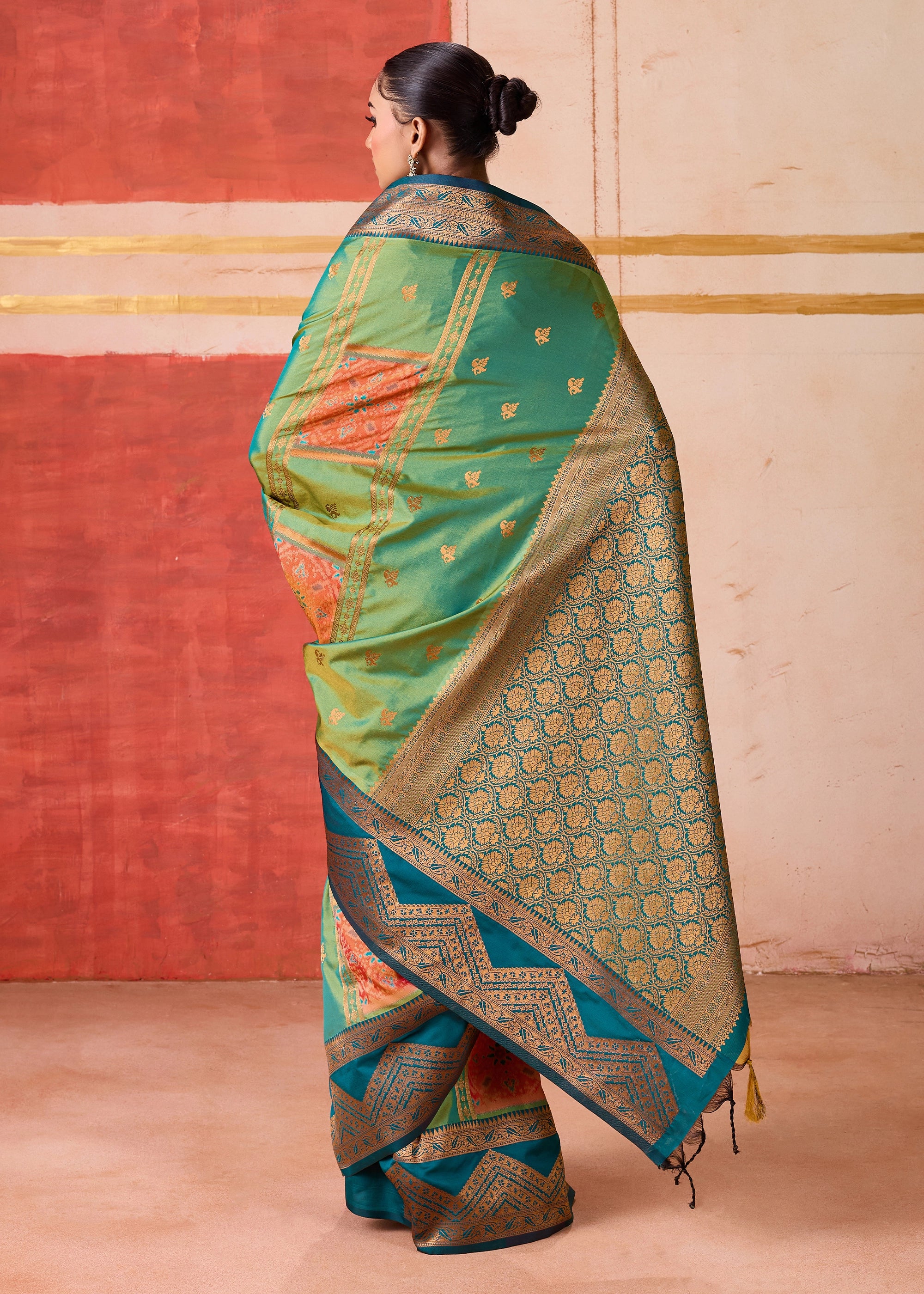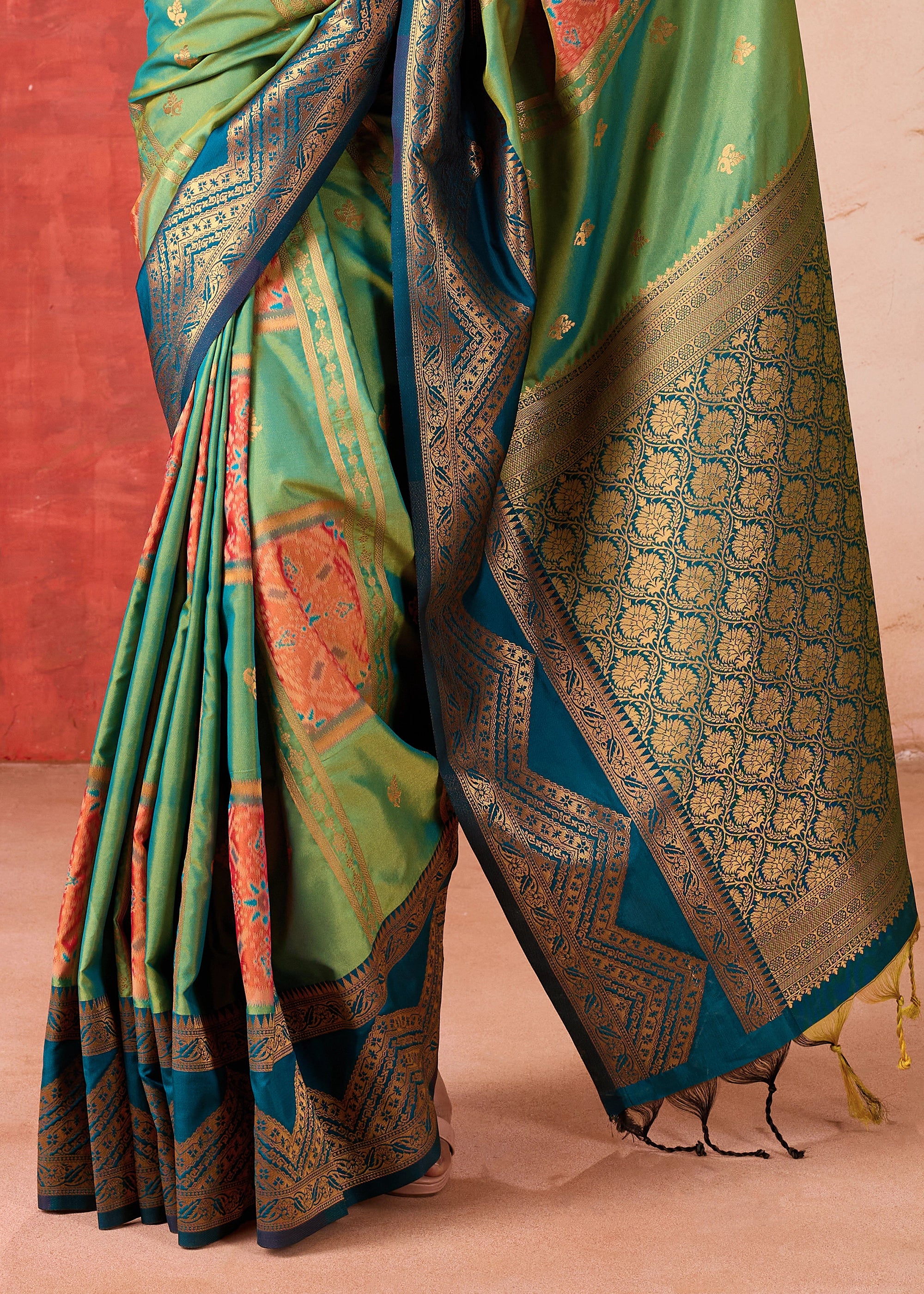 Mint Green Dual Tone Bronze Zari Woven Banarasi Silk Saree