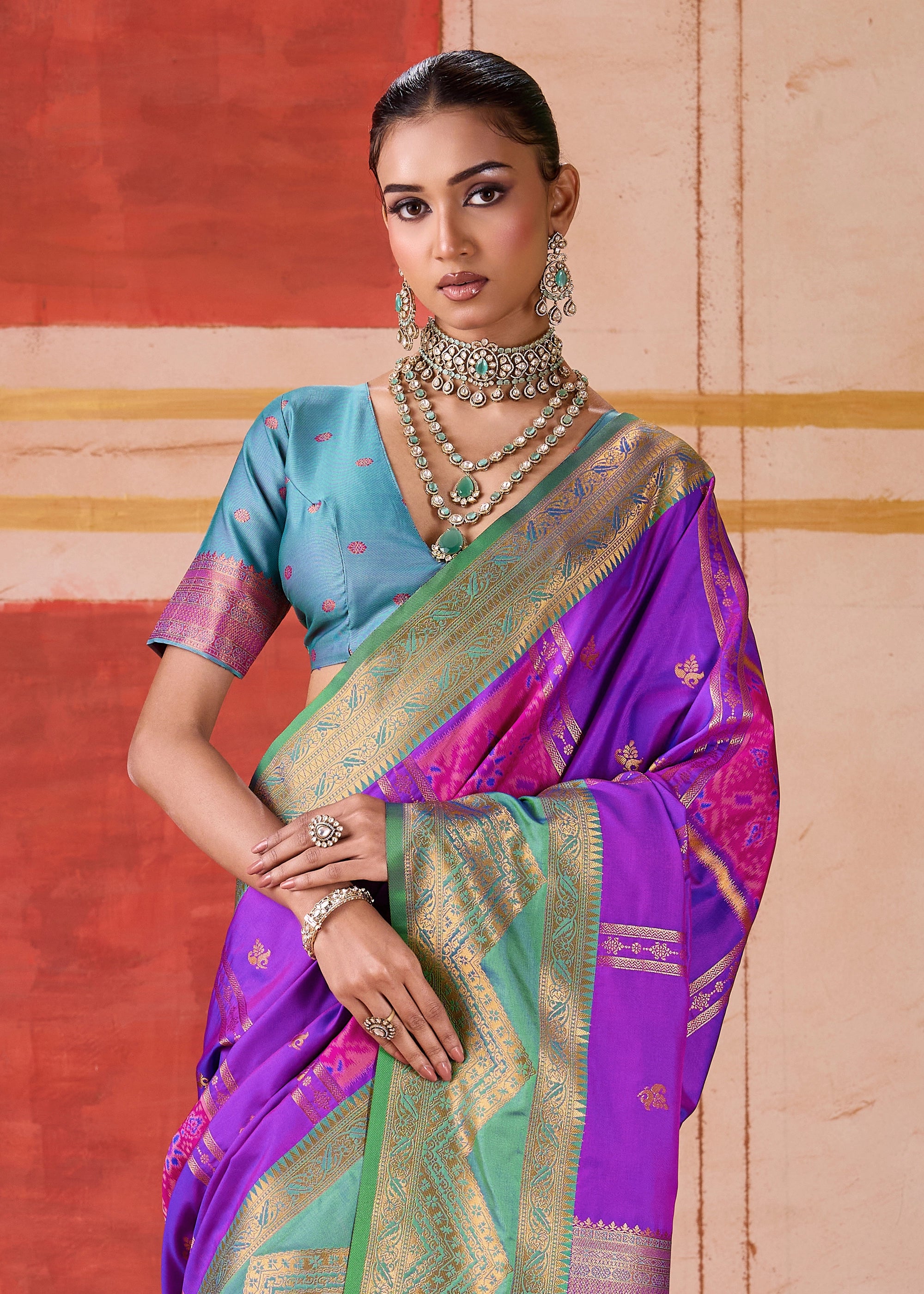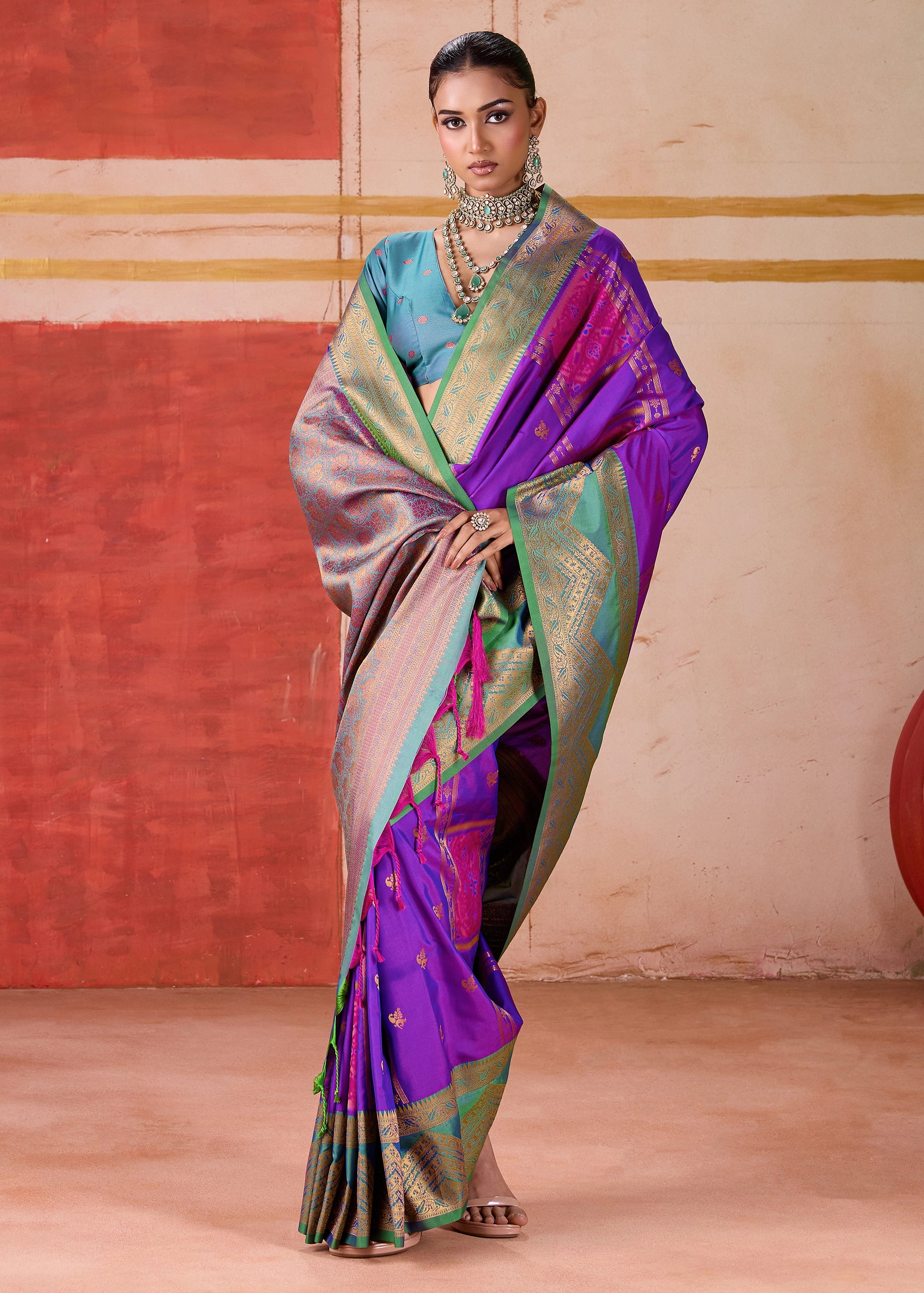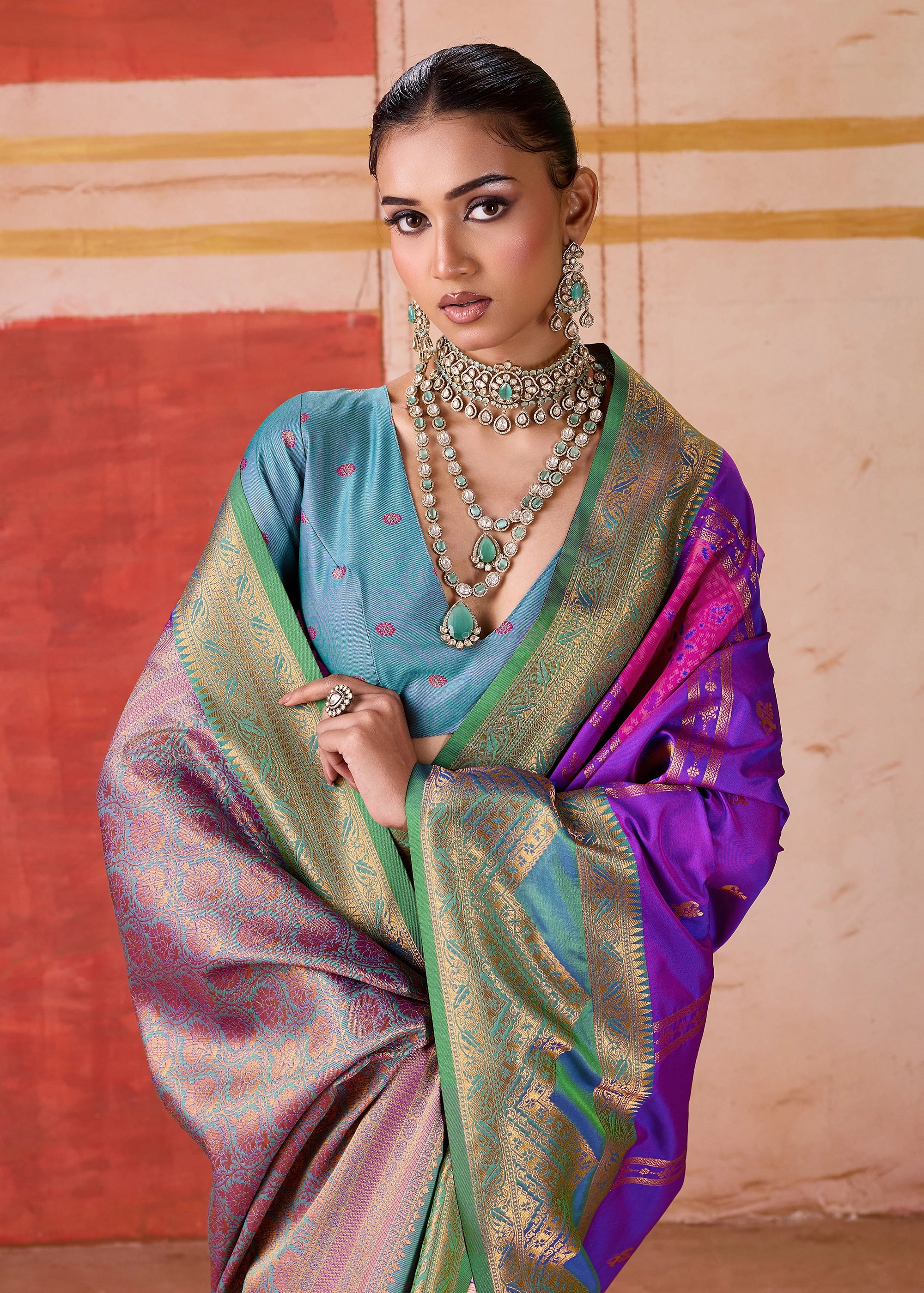 Purple Dual Tone Bronze Zari Woven Banarasi Silk Saree