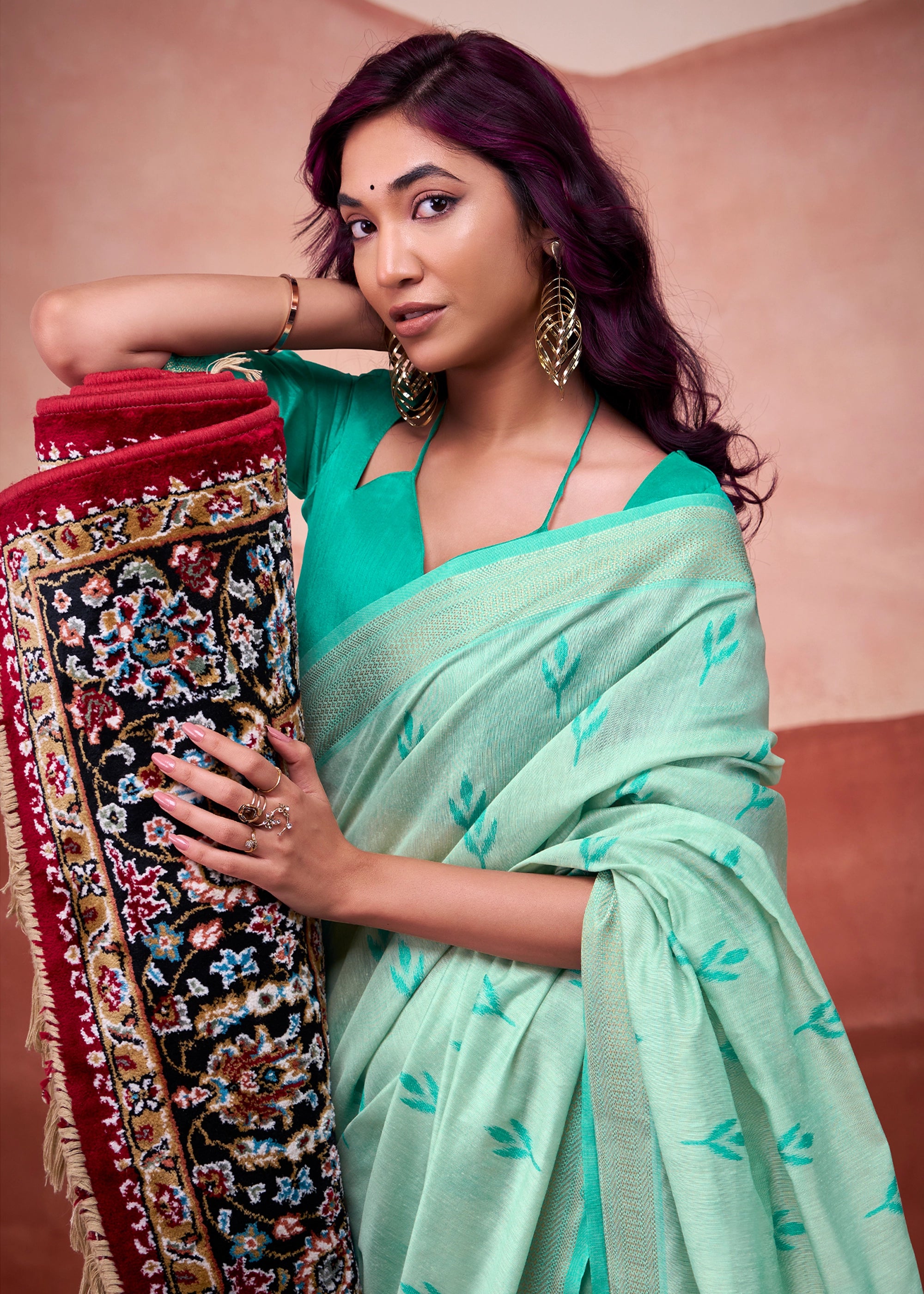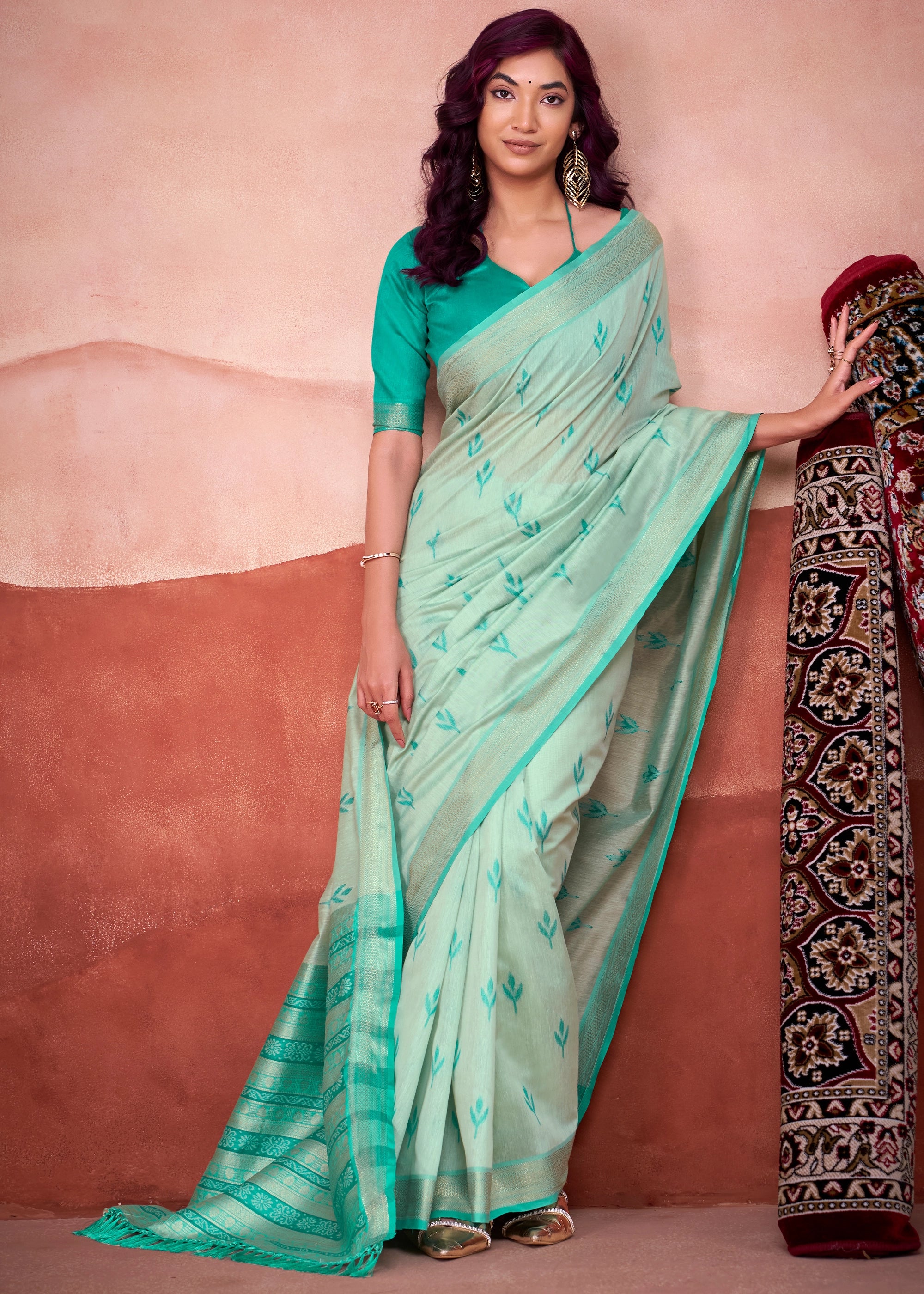 This exquisite saree features a beautiful blend of cotton and silk threads, expertly woven together to create a fabric that is both soft and lustrous. The cotton provides a comfortable drape, while the silk adds a subtle sheen and texture, giving the saree a regal and sophisticated appearance.
