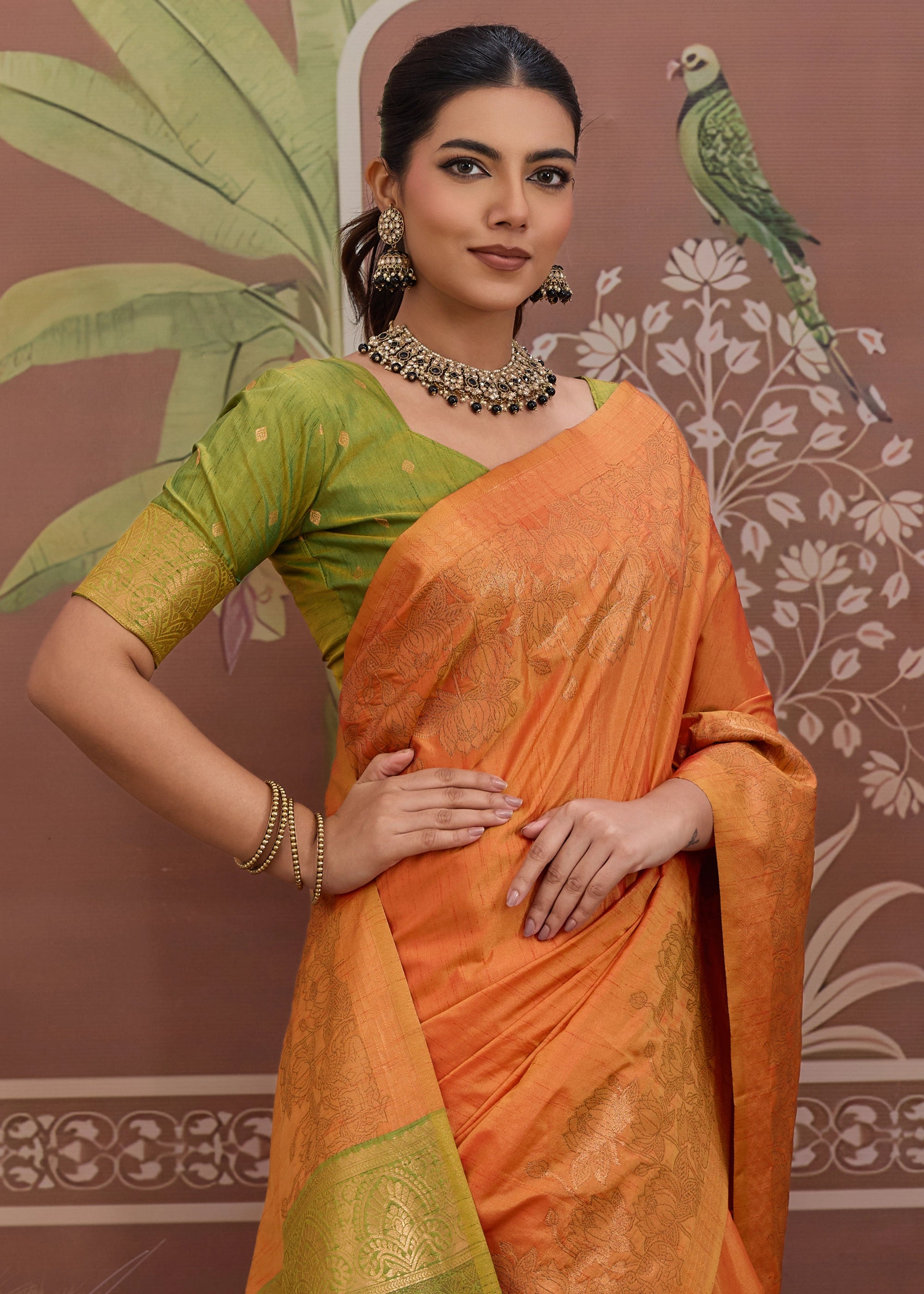 Autumn Orange Woven Tussar Silk Saree