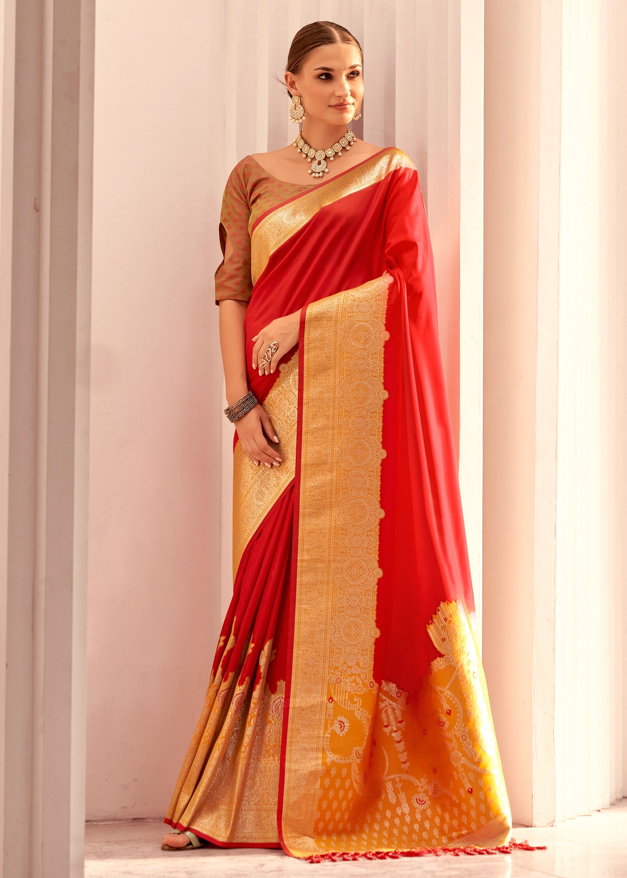 Bridal Red Woven Banarasi Silk Saree