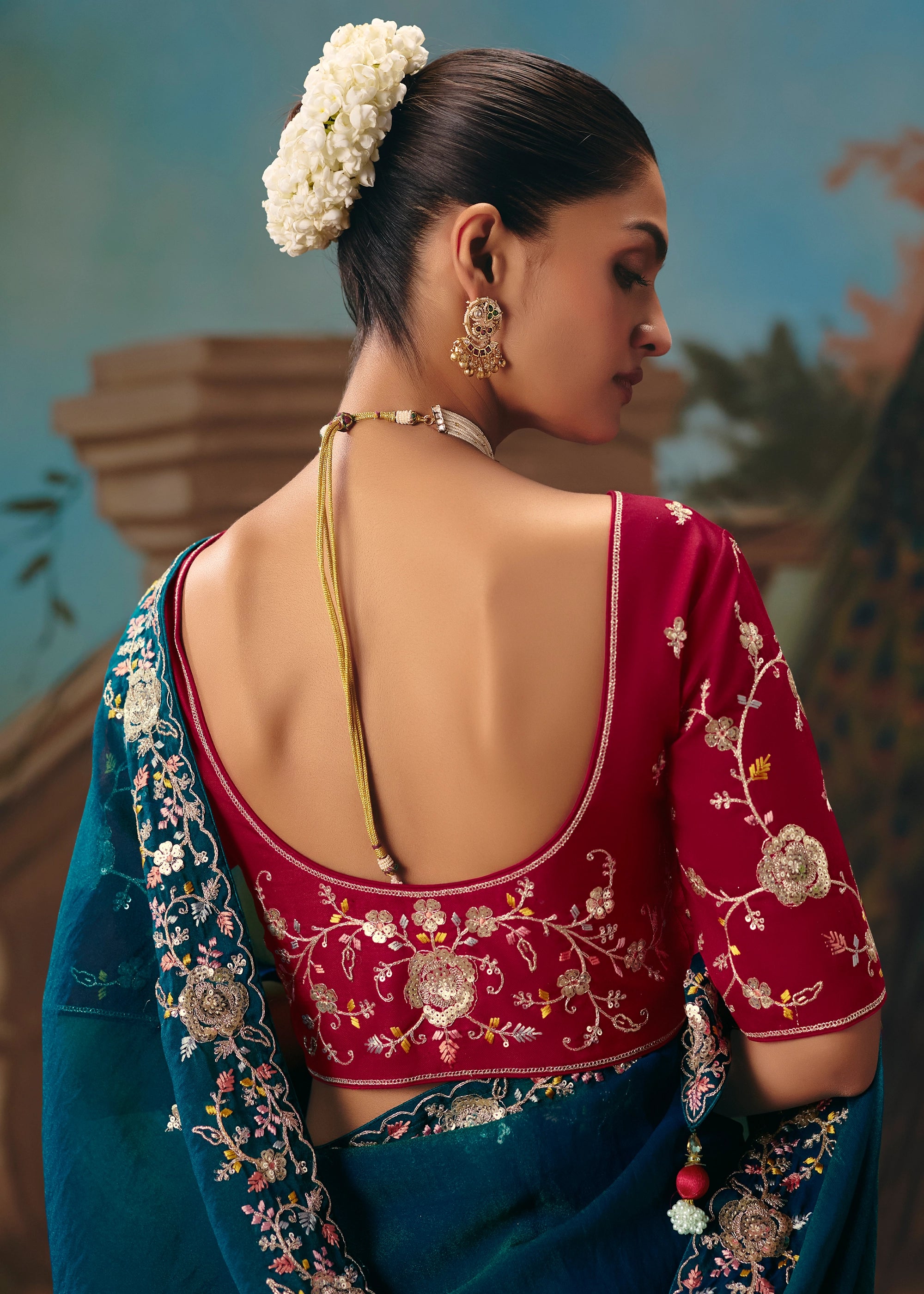 This saree exudes soft luxury and refined elegance. The highlight of the saree is its delicately embroidered blouse, adorned with intricate floral motifs, fine threadwork, and subtle embellishments that add depth and sophistication without overpowering the look.
