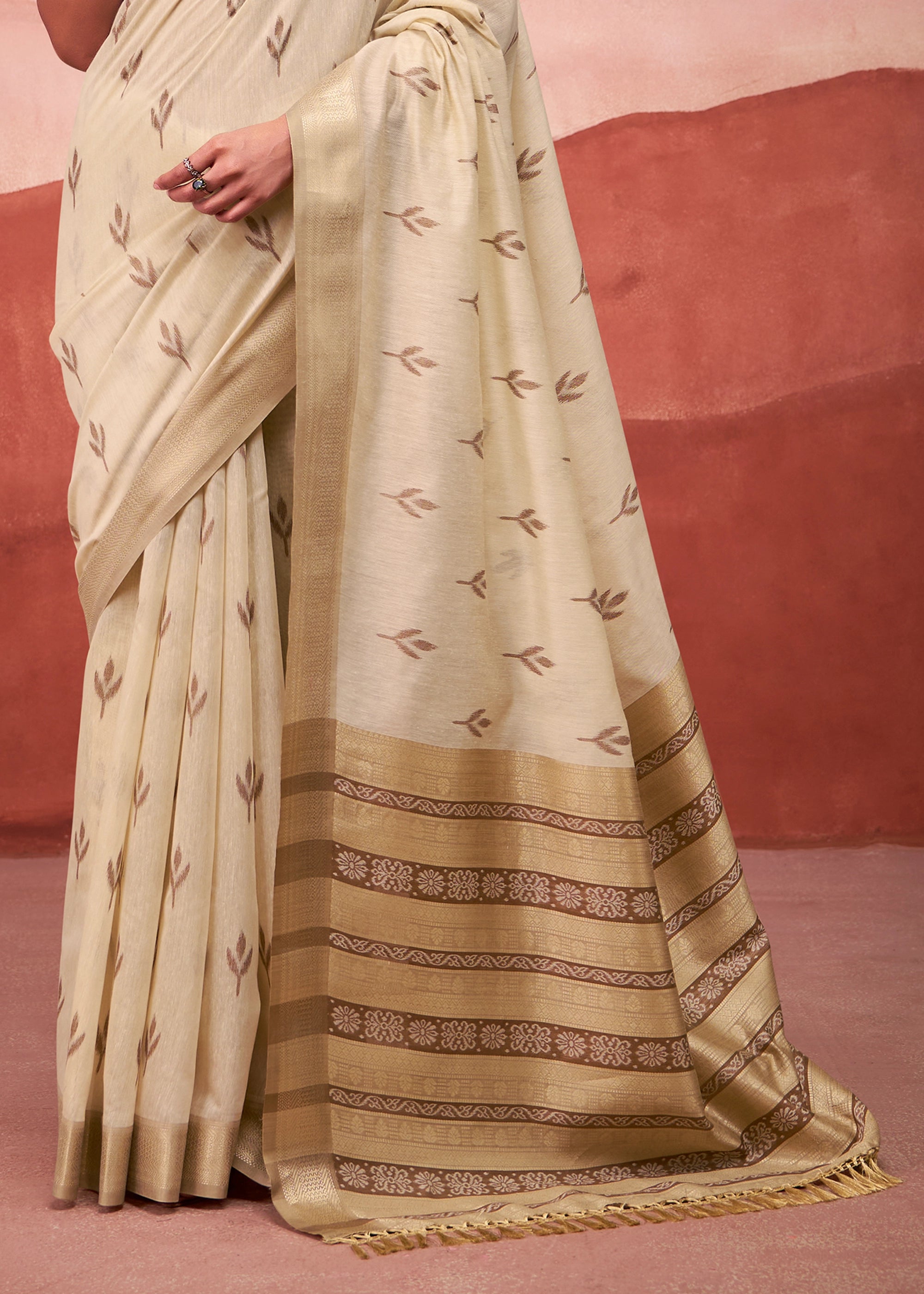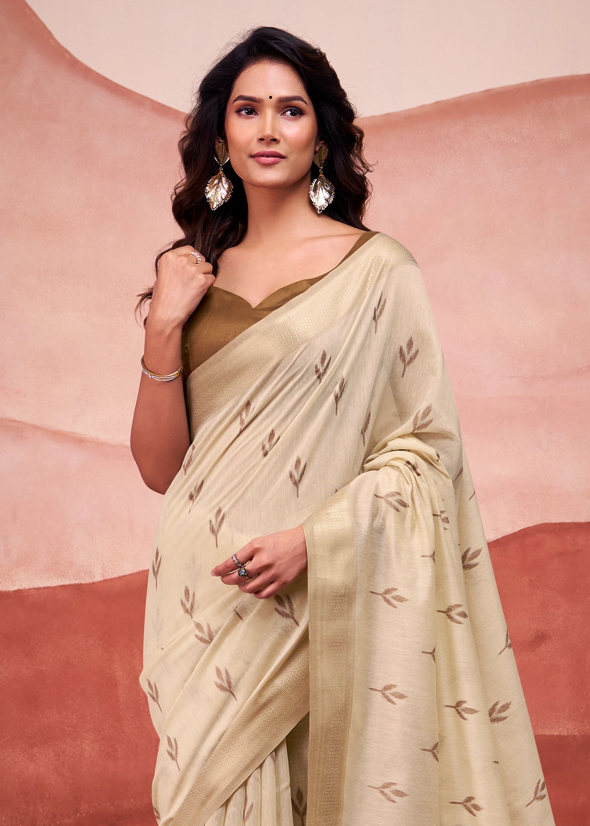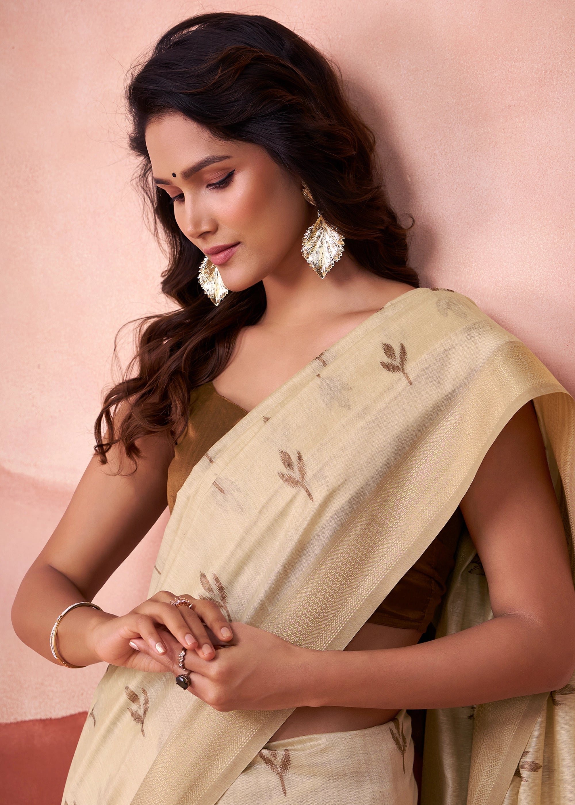 This exquisite saree features a beautiful blend of cotton and silk threads, expertly woven together to create a fabric that is both soft and lustrous. The cotton provides a comfortable drape, while the silk adds a subtle sheen and texture, giving the saree a regal and sophisticated appearance.