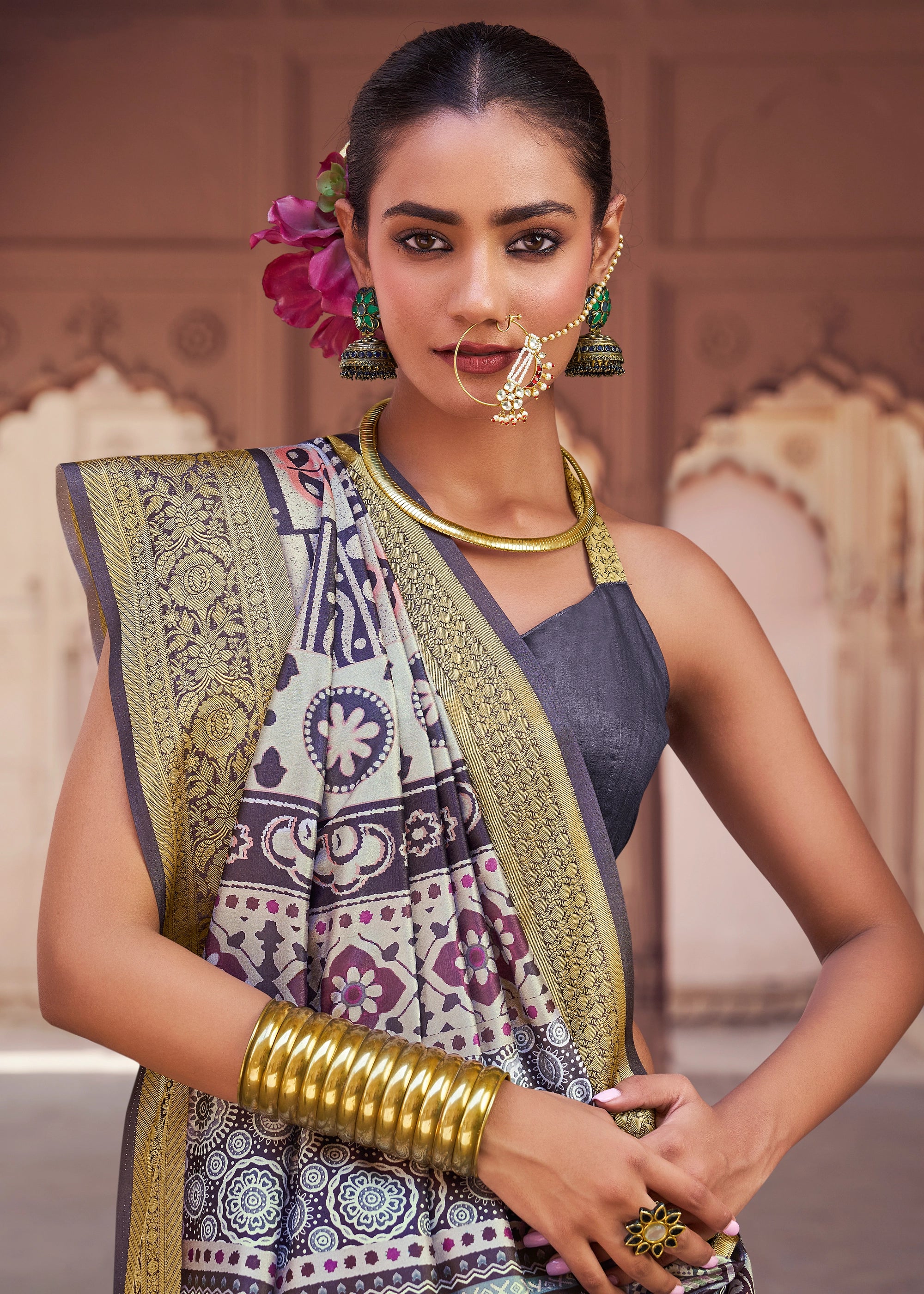 Drizzle Grey Banarasi Digital Printed Silk Saree