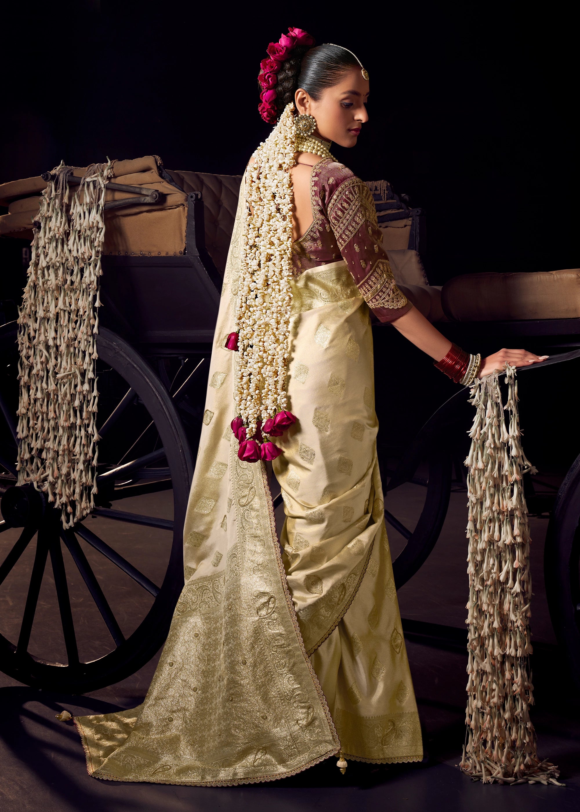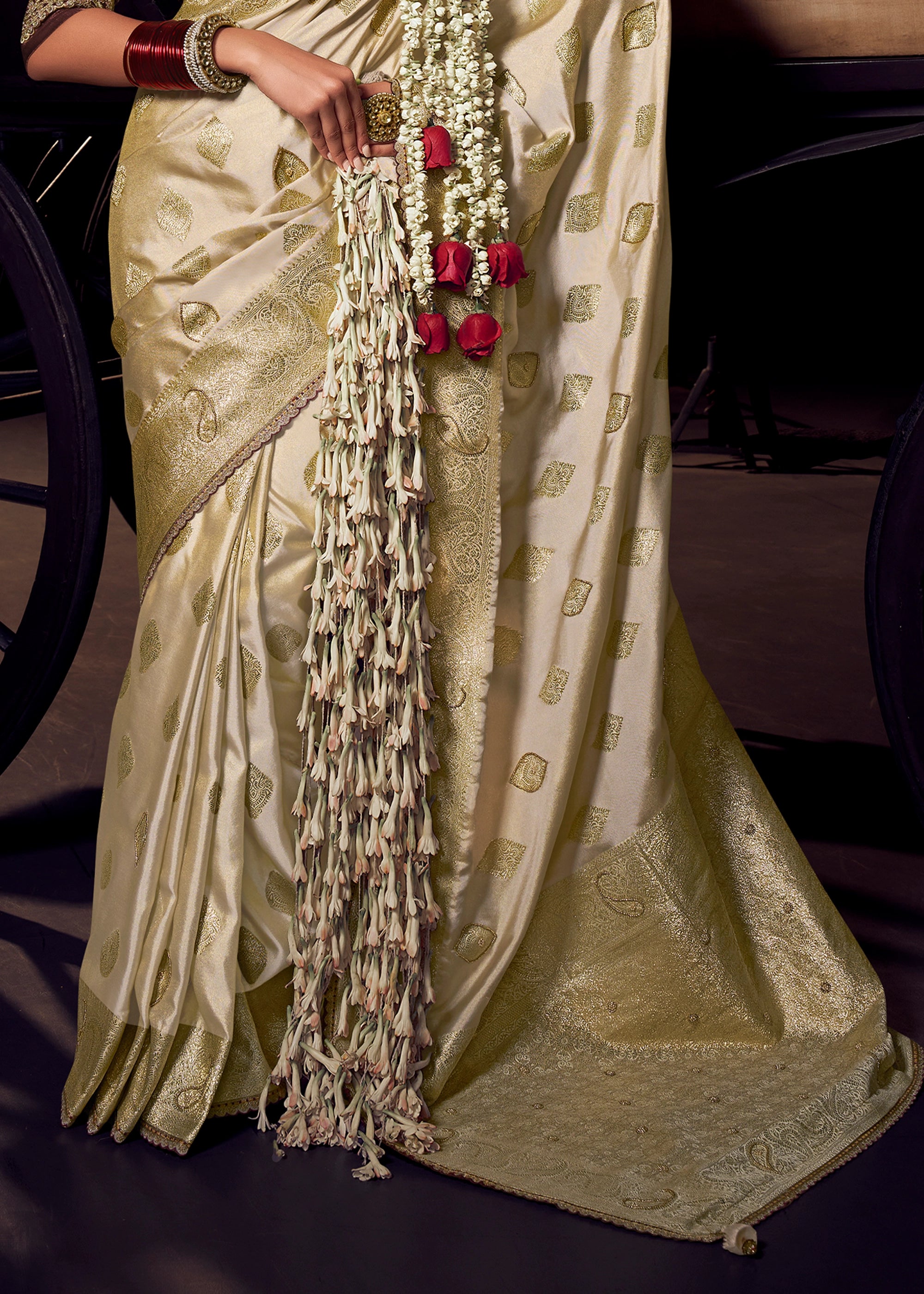 “Exclusive Offer” : Off White Woven Banarasi Satin Silk Saree