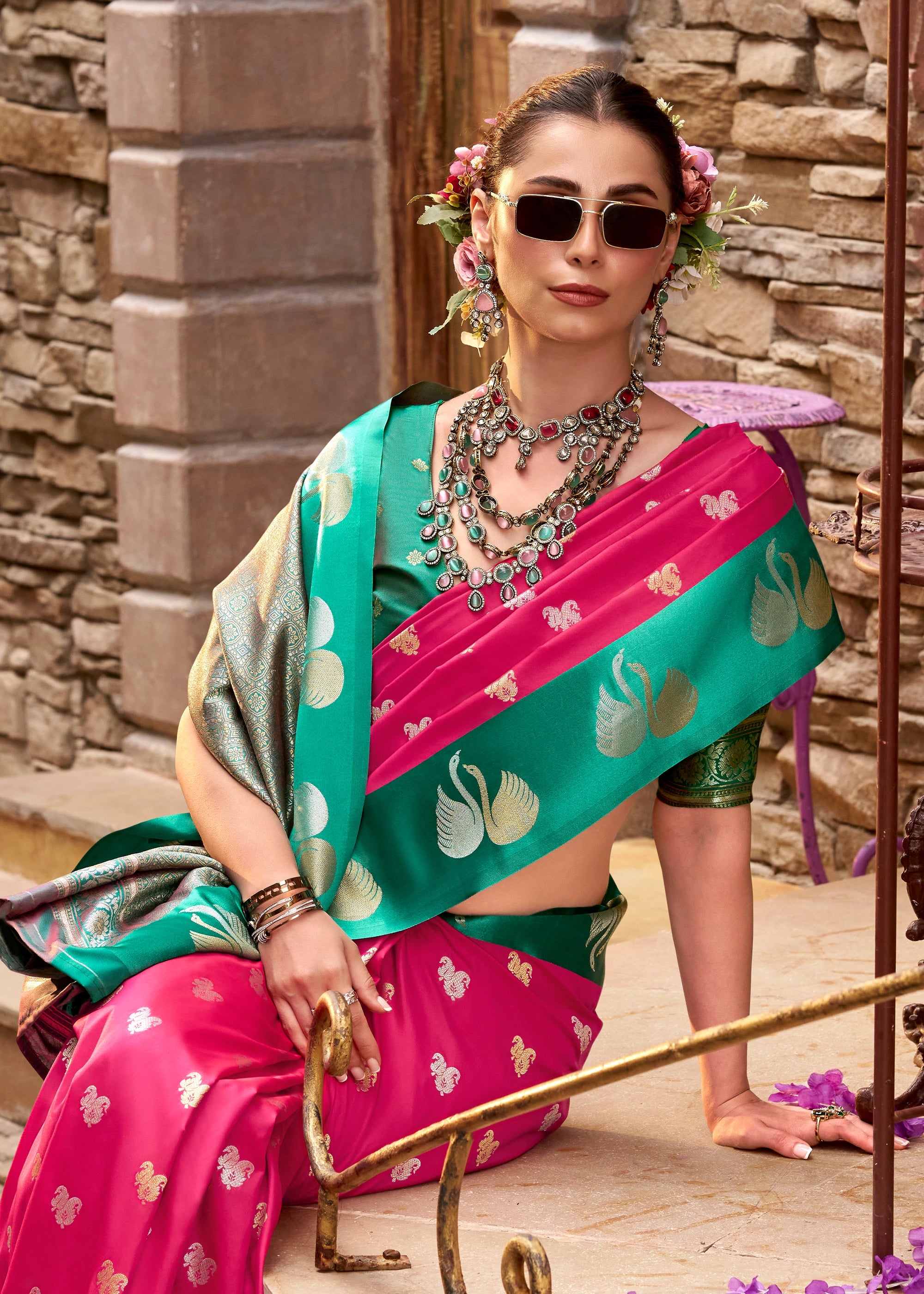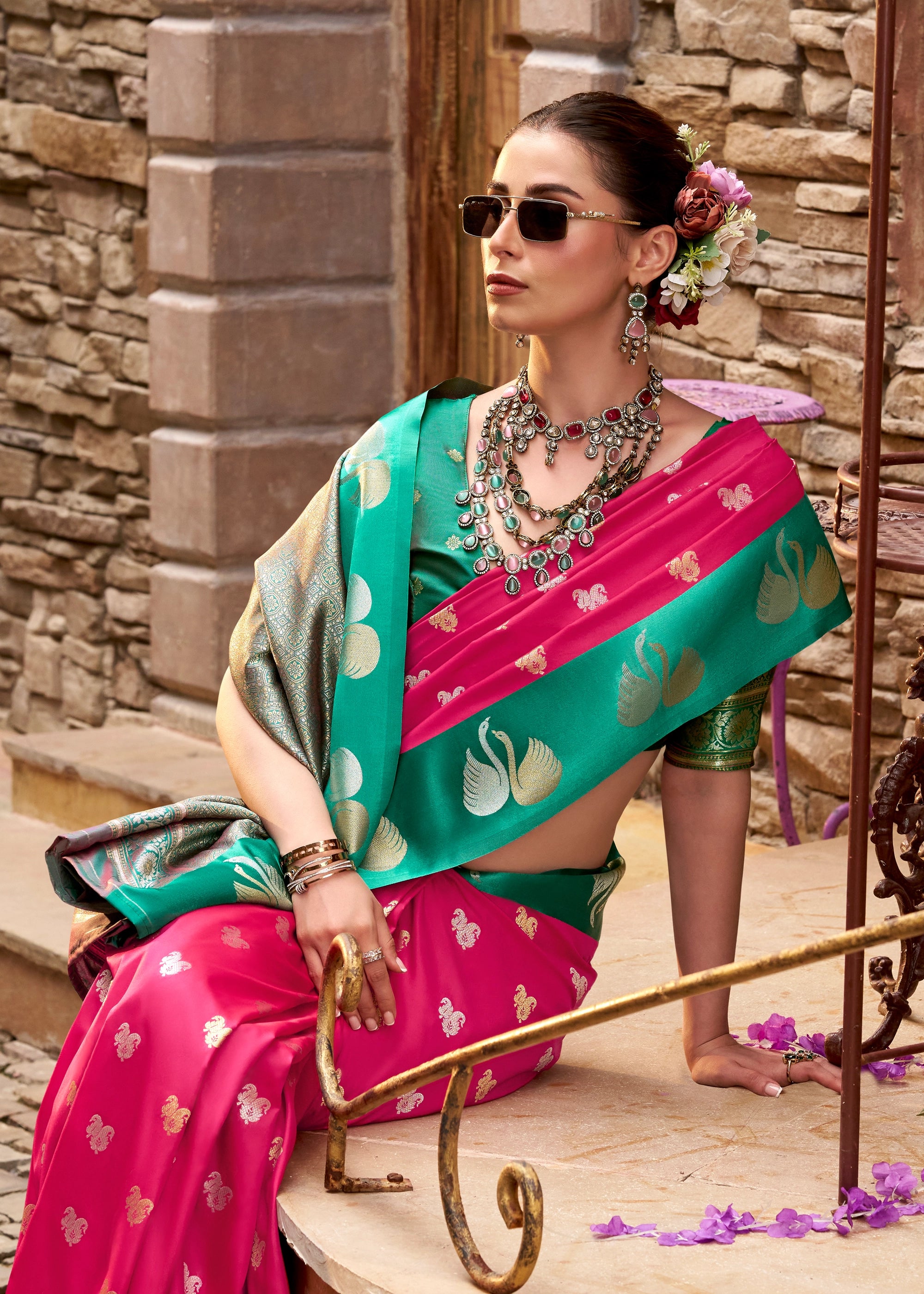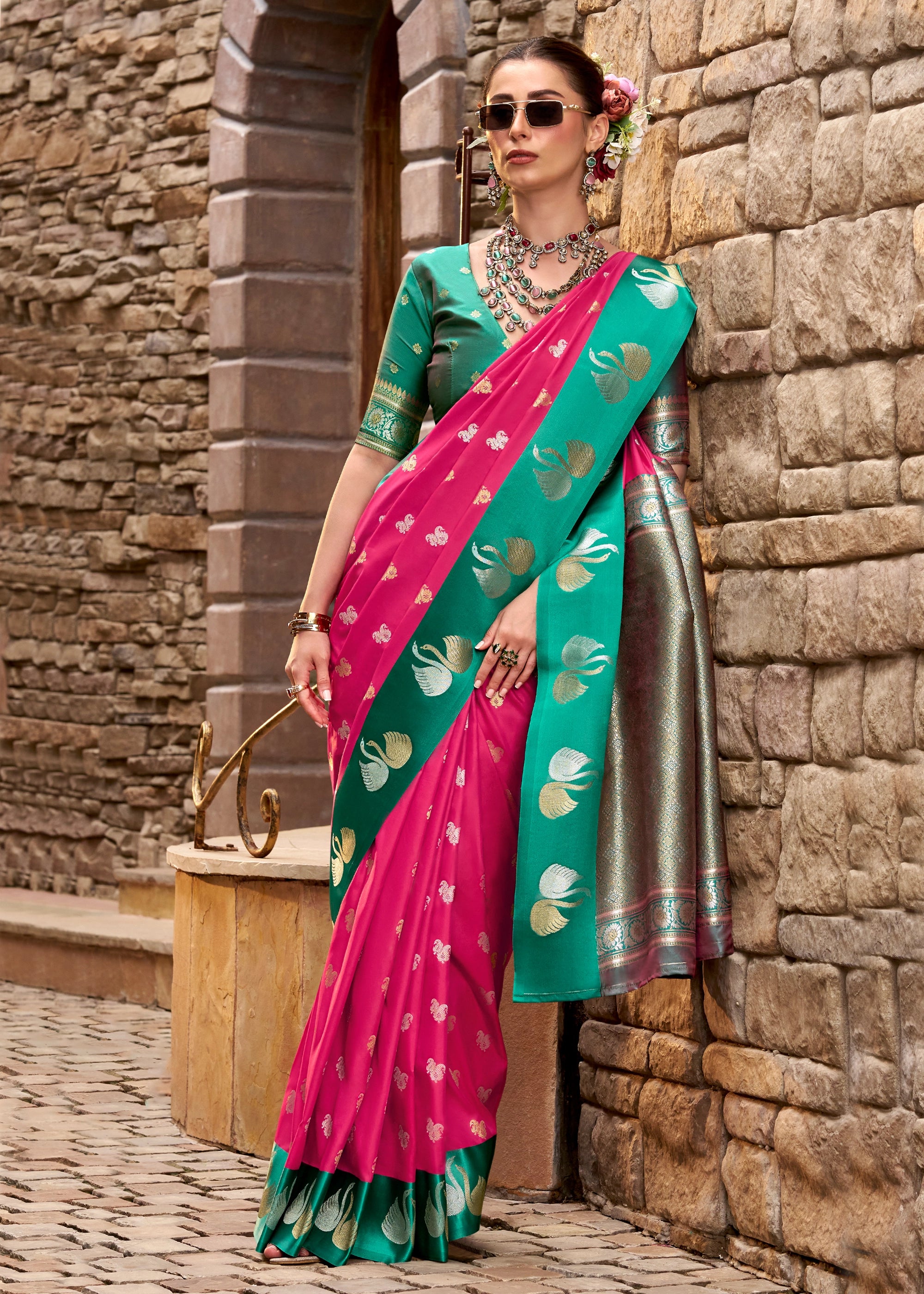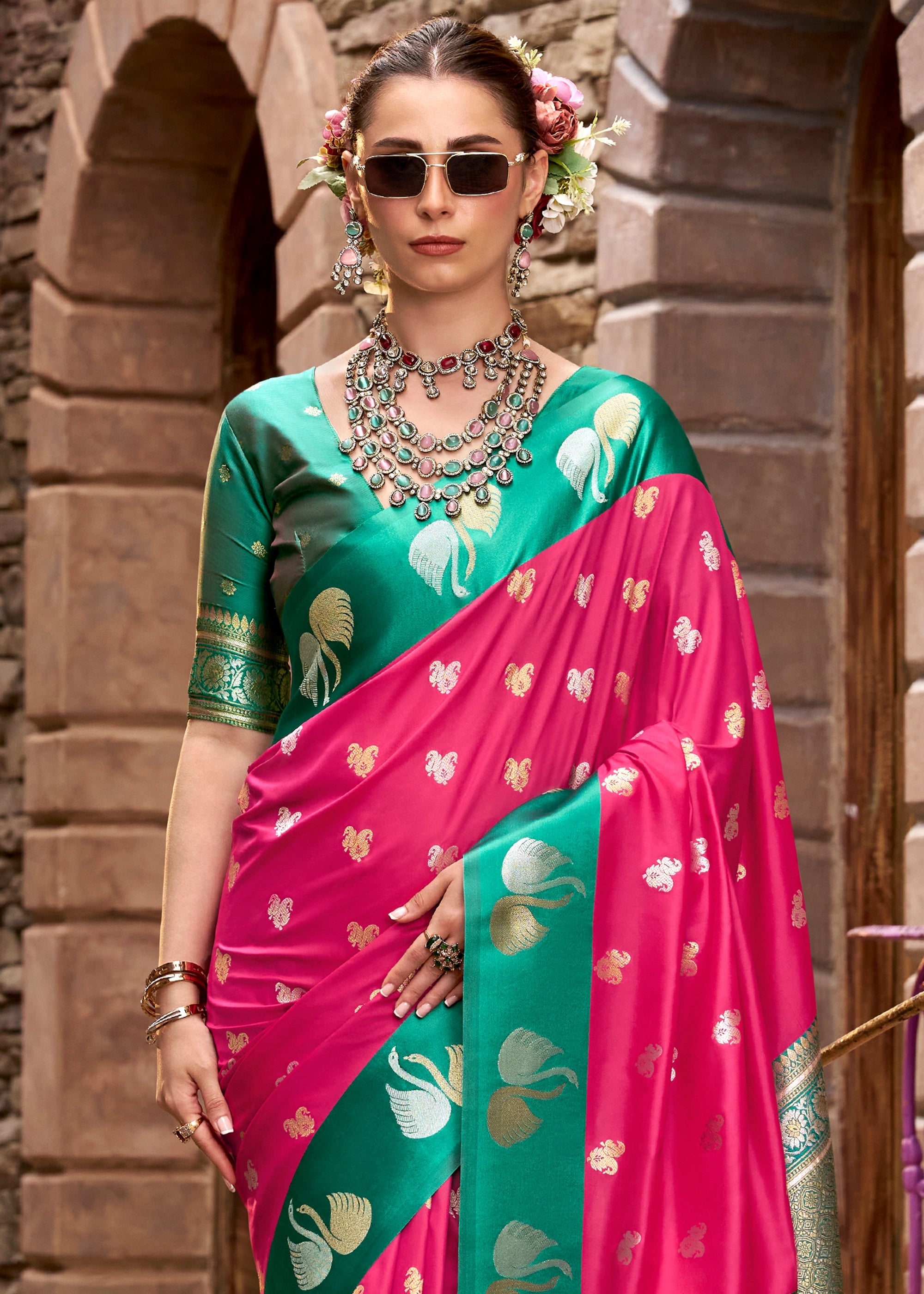Radiate royal elegance with this luxurious Banarasi Satin Silk Saree, a perfect fusion of heritage and contemporary charm. Crafted from smooth, lustrous satin silk, it features intricate Banarasi zari weaving that reflects the timeless artistry of Varanasi’s master weavers.