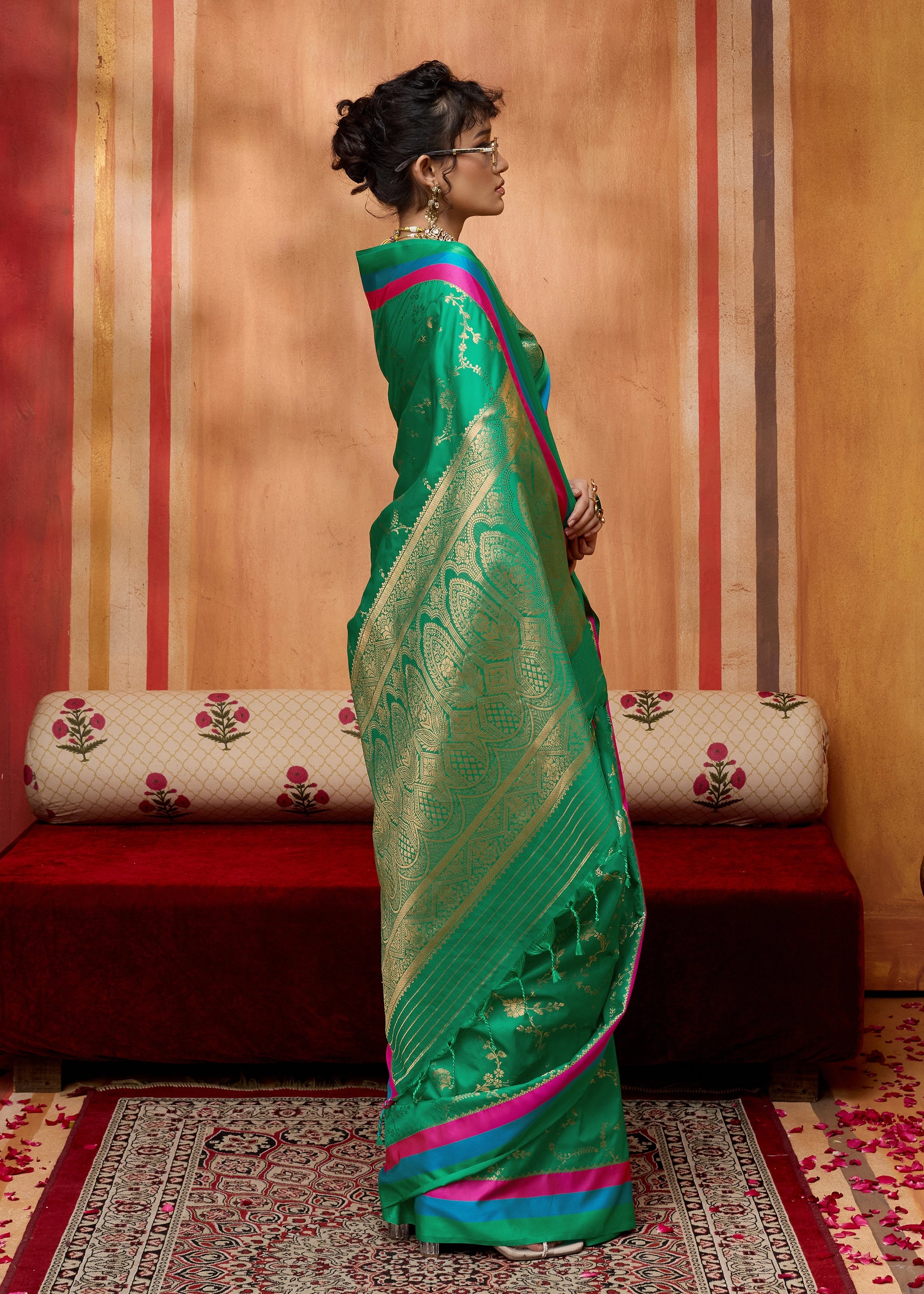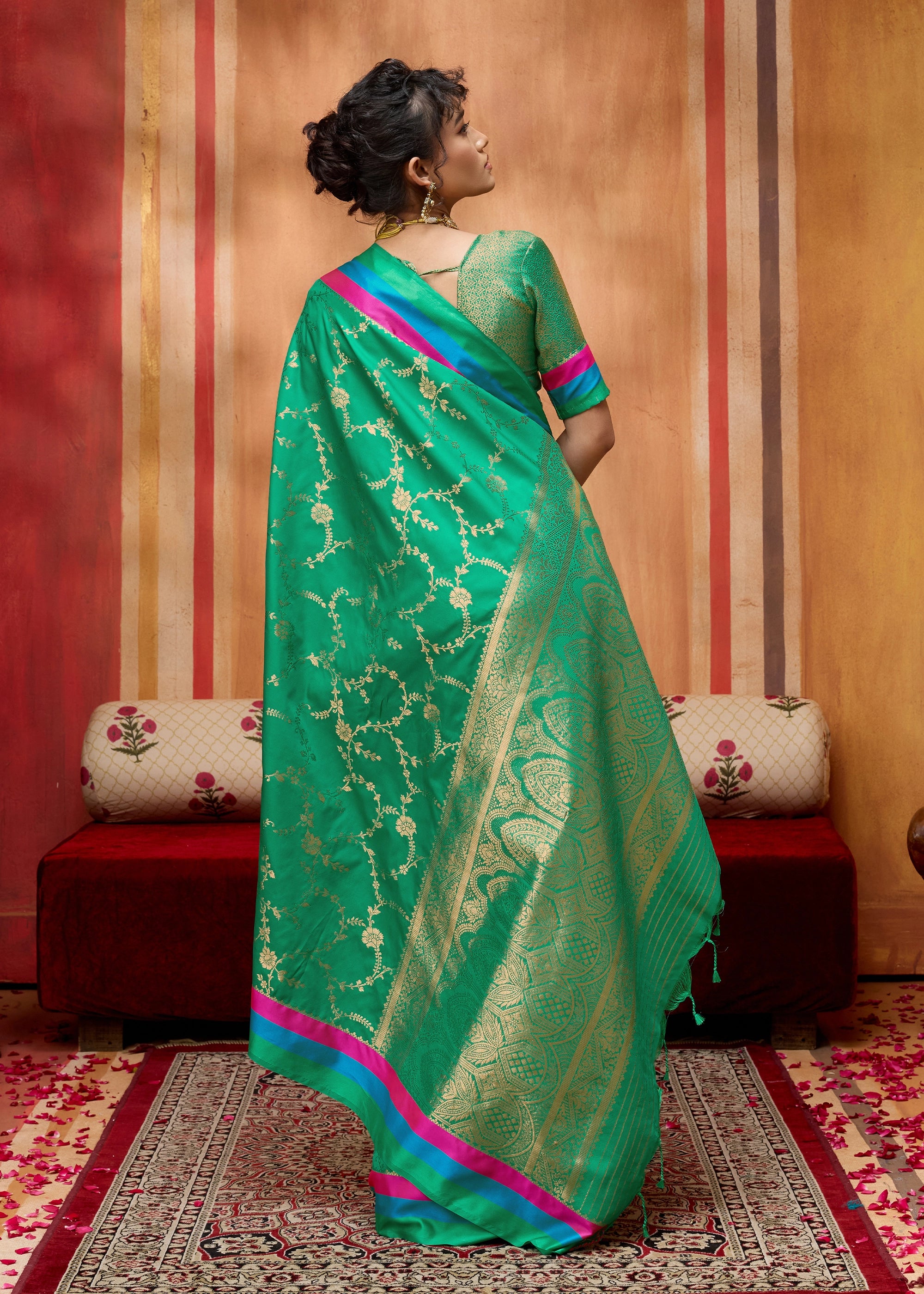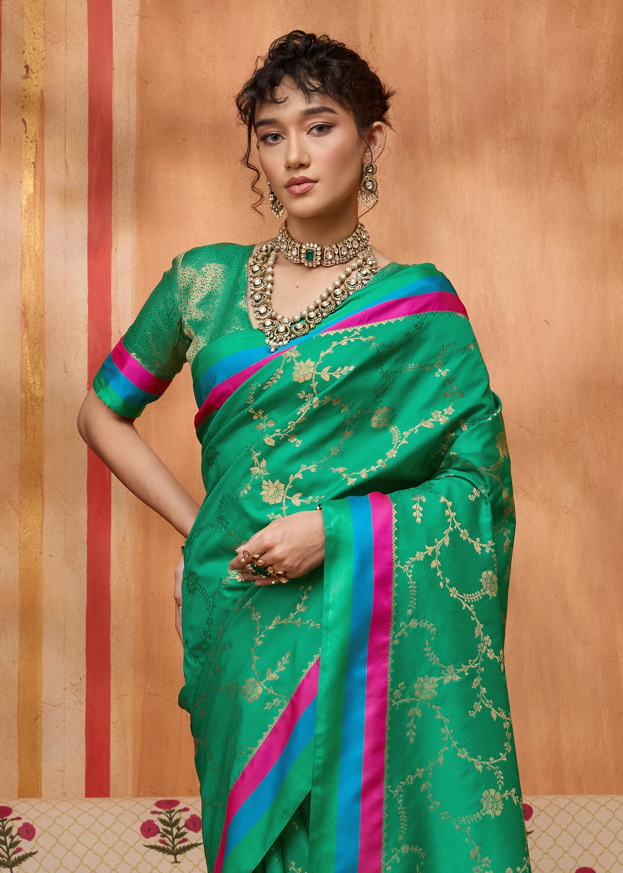 Pure delight that combine royalty and clam stability into your wardrobe. the rich weaving enhances the aura whereas the delicate colors exude the richness of tradition. this beautiful 6-yard gives a aura a more enchanting appeal for any special occasions.