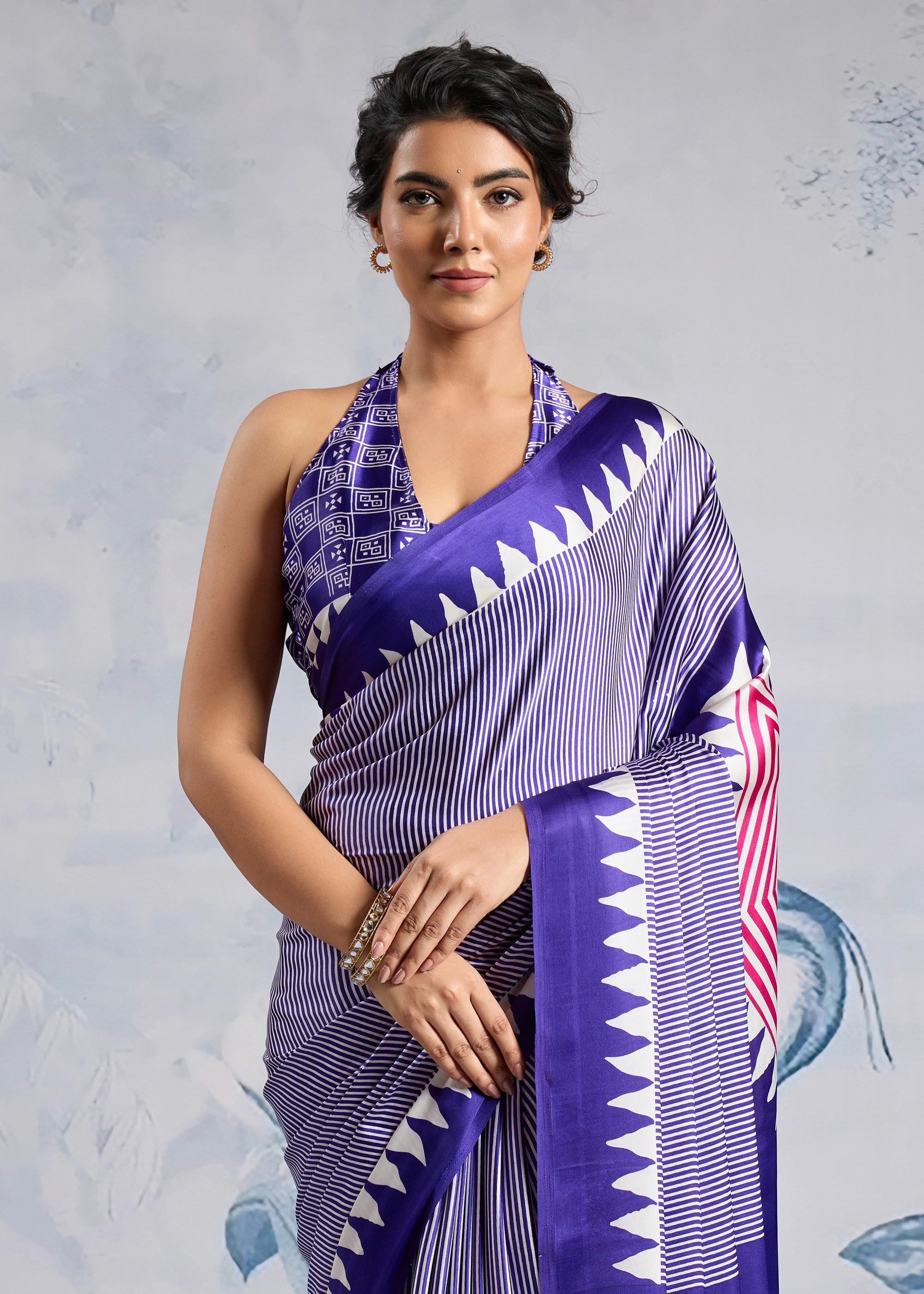 Purple Printed Satin Silk Saree