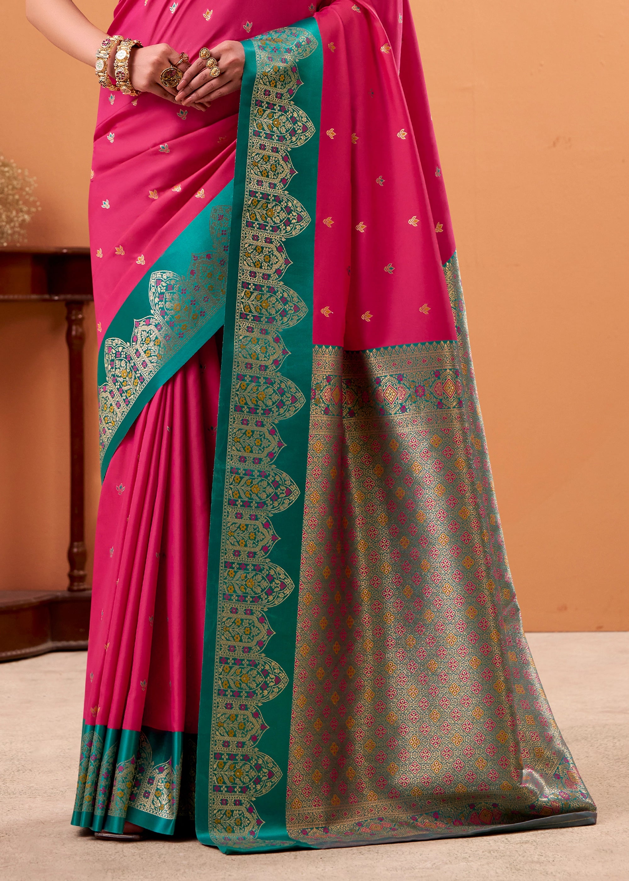Radiate royal elegance with this luxurious Banarasi Satin Silk Saree, a perfect fusion of heritage and contemporary charm. Crafted from smooth, lustrous satin silk, it features intricate Banarasi zari weaving that reflects the timeless artistry of Varanasi’s master weavers.