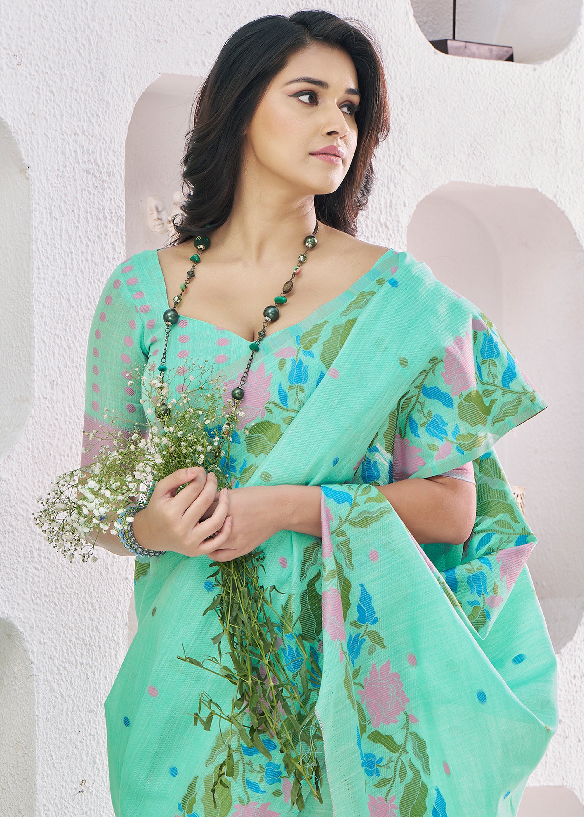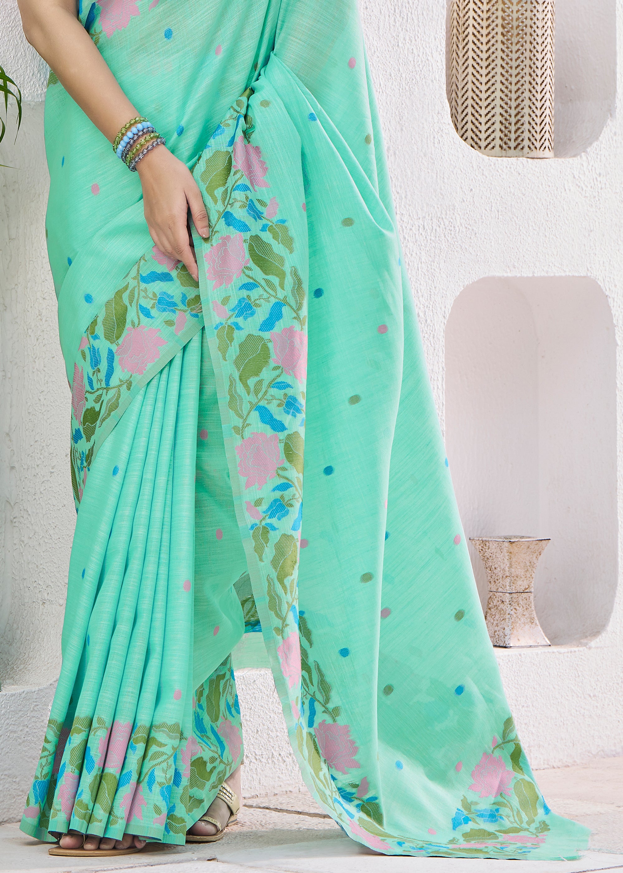 Sea Green Woven Linen Silk Saree