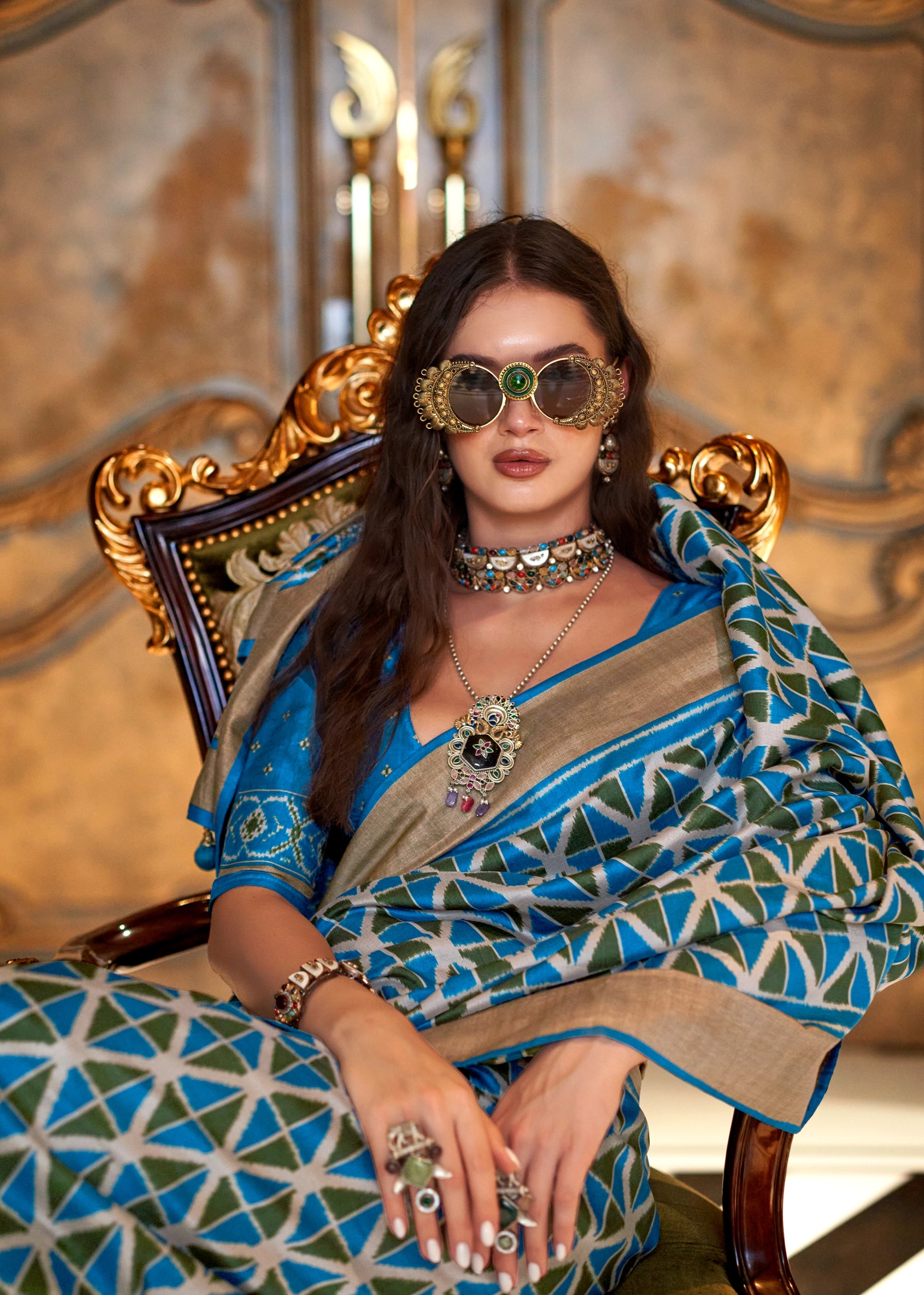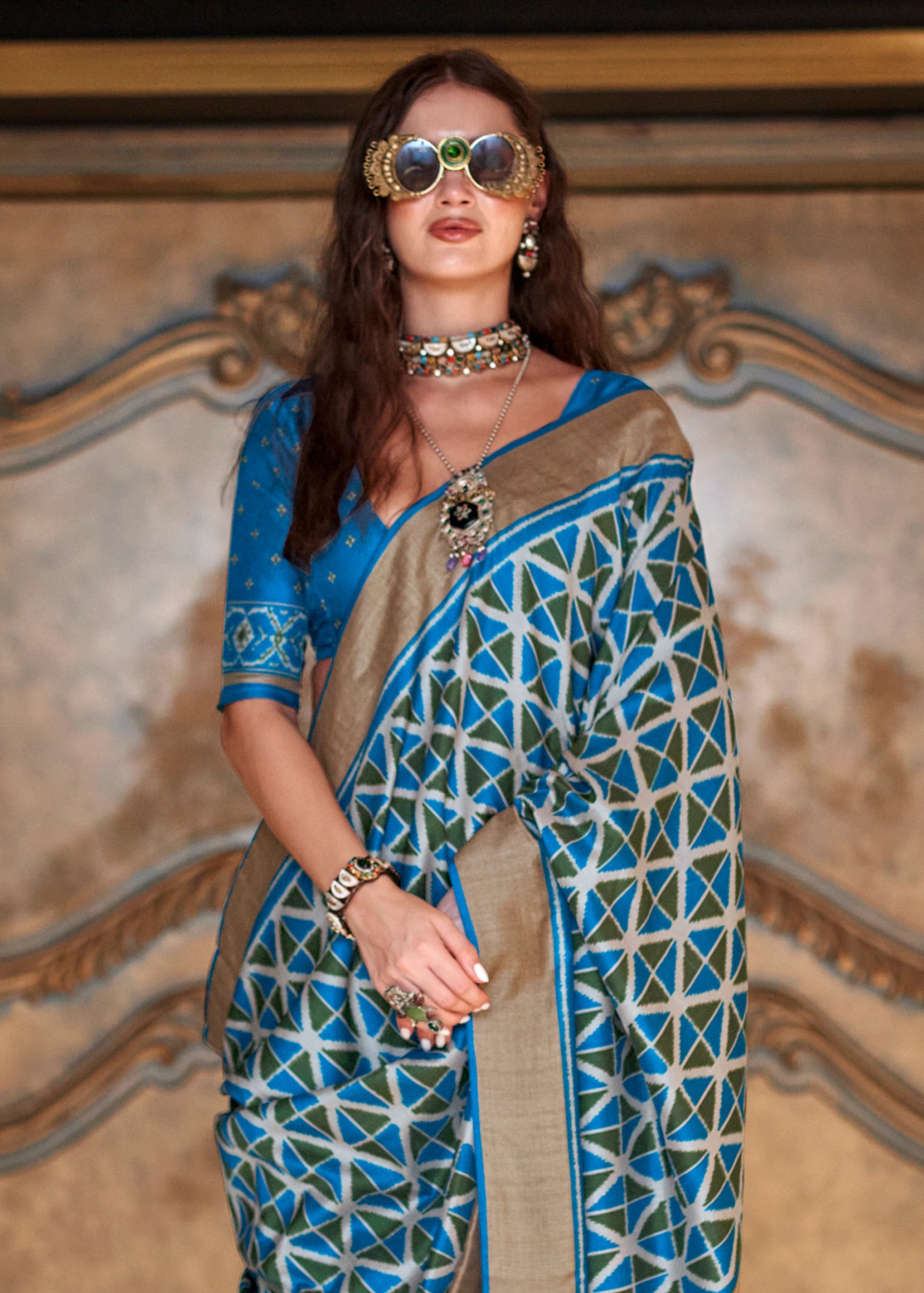 Swedish Blue Printed Patola Silk Saree