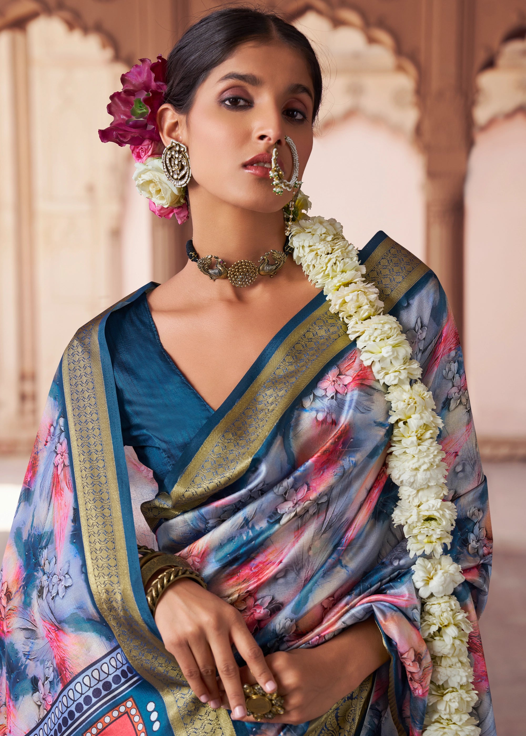 Victoria Blue Banarasi Digital Printed Silk Saree